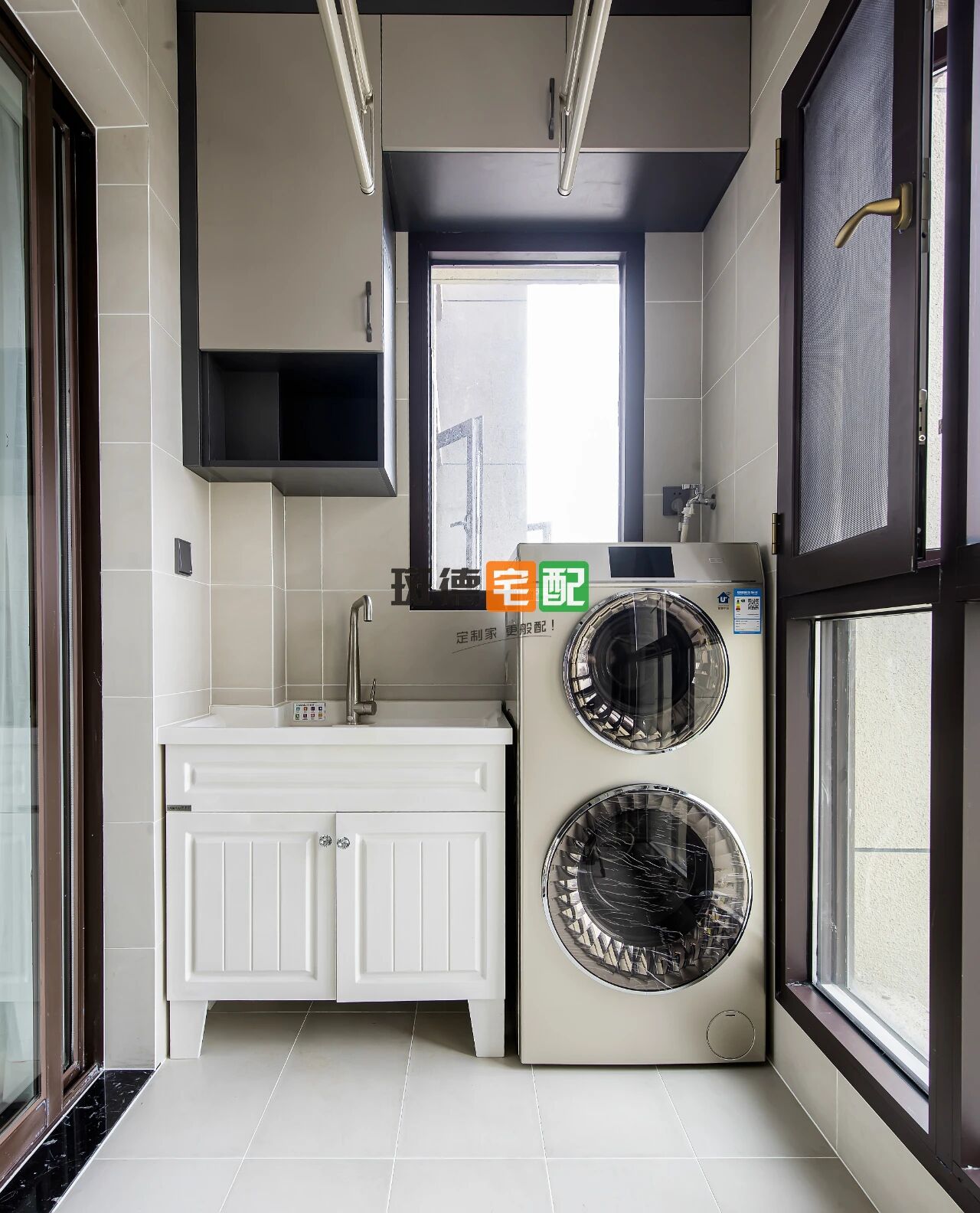 男業(yè)主是高個子,如這個鞋柜及陽臺柜的高度則是按照一家人的身高及實際需求來確定高度、柜深的。