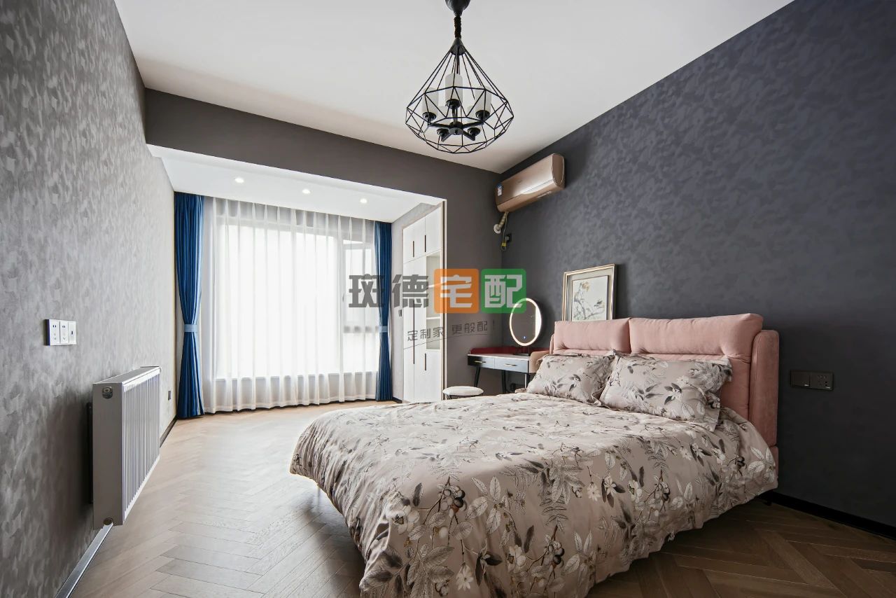 女兒房?jī)?nèi)就著南陽(yáng)臺(tái)及空調(diào)外機(jī)空間定制衣柜,在空調(diào)管線暗埋處理上,體現(xiàn)了雅美居整裝服務(wù)優(yōu)勢(shì):家電部工作人員協(xié)同設(shè)計(jì)師在開工時(shí)進(jìn)行現(xiàn)場(chǎng)定位,將1.1米長(zhǎng)的掛式空調(diào)PVC套管藏進(jìn)柜體背板后,提前預(yù)留空調(diào)線位置,使空間更簡(jiǎn)潔美觀。
