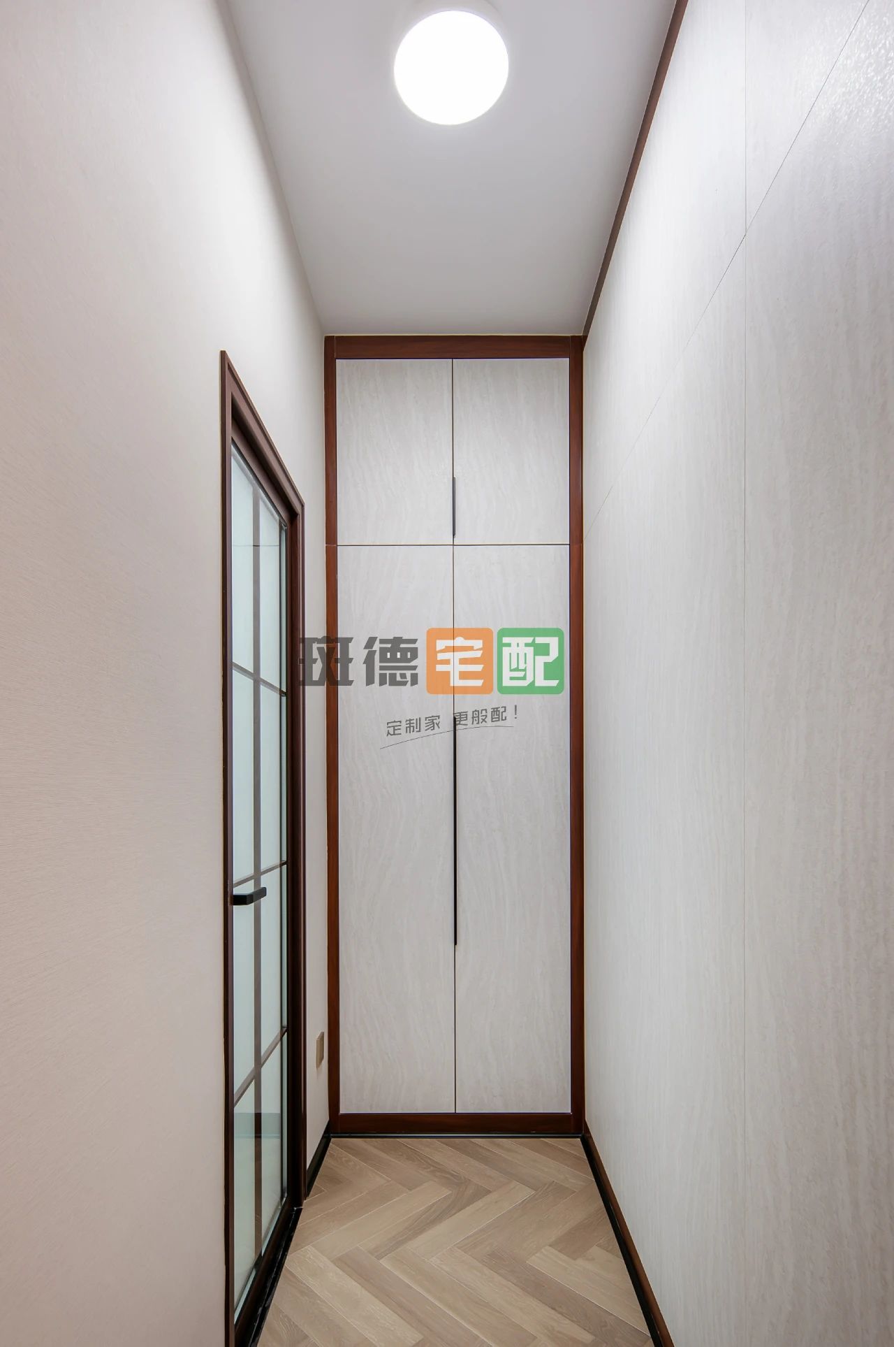 衣帽間朝南開門,北面朝衛(wèi)生間方向的背板非常注重細(xì)節(jié):通篇采取隱形門設(shè)計(jì),避免縫隙不均勻影響美觀,改造后非常勻稱,就像一組L型雙面柜,完美拯救強(qiáng)迫癥患者對(duì)細(xì)節(jié)的“吹毛求疵”。