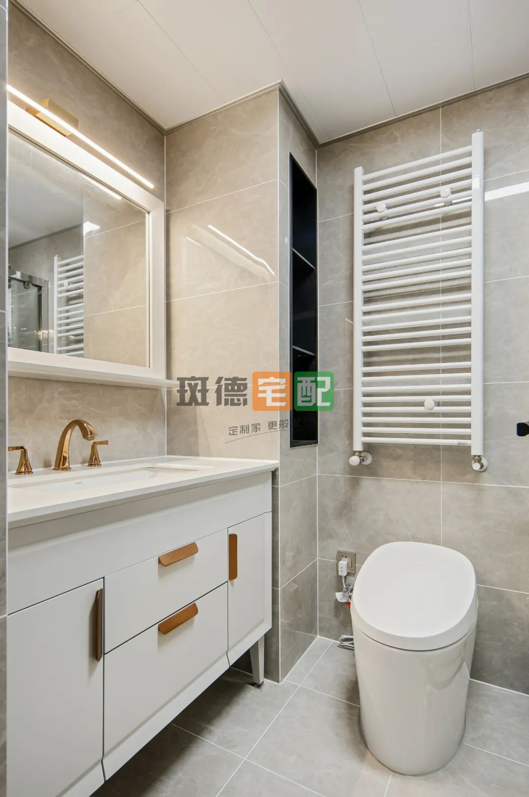 主衛(wèi)采用立管空間做壁龕用來(lái)收納及置物,剛好同時(shí)放下浴室柜且沒有衛(wèi)生死角。