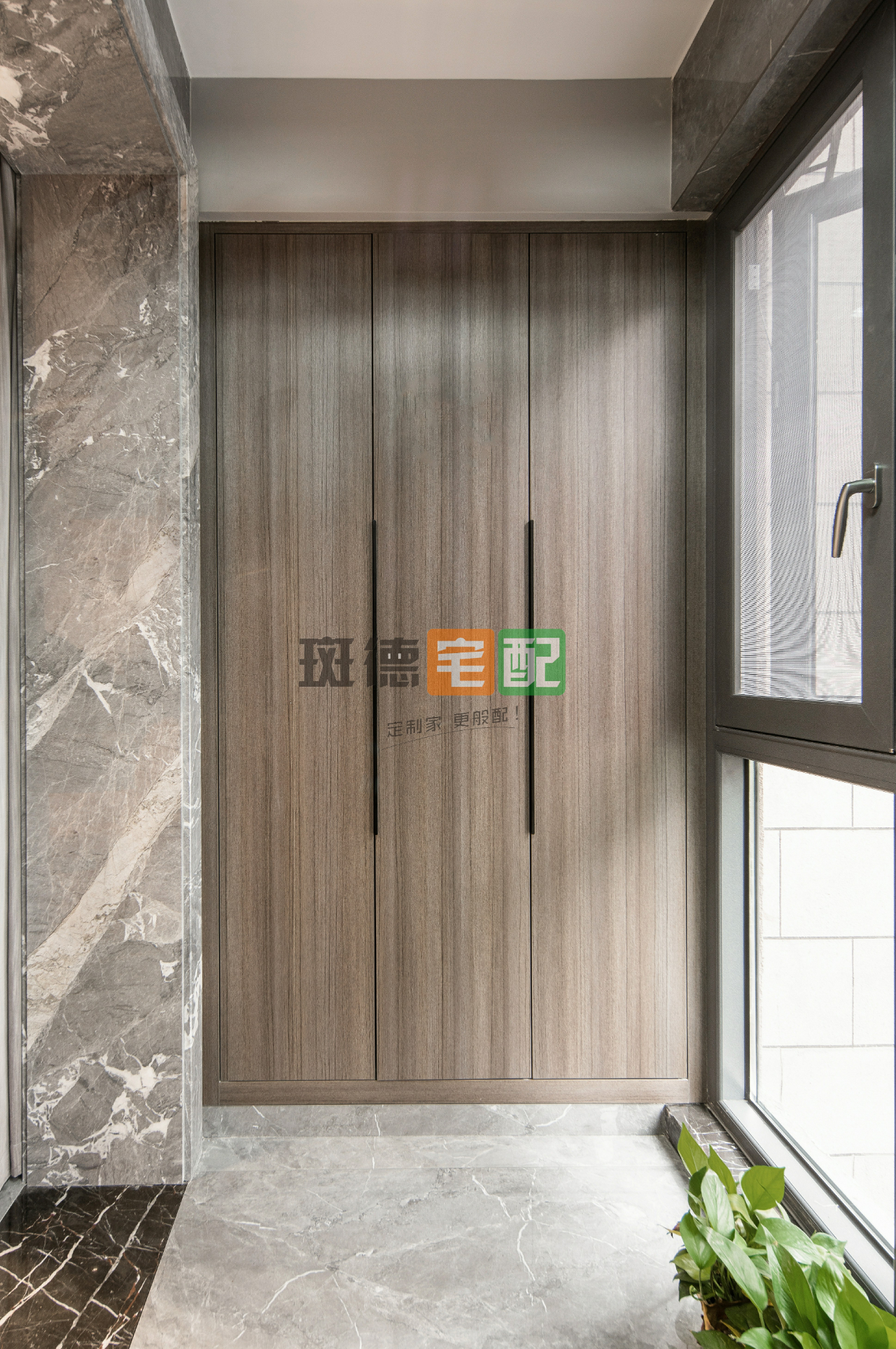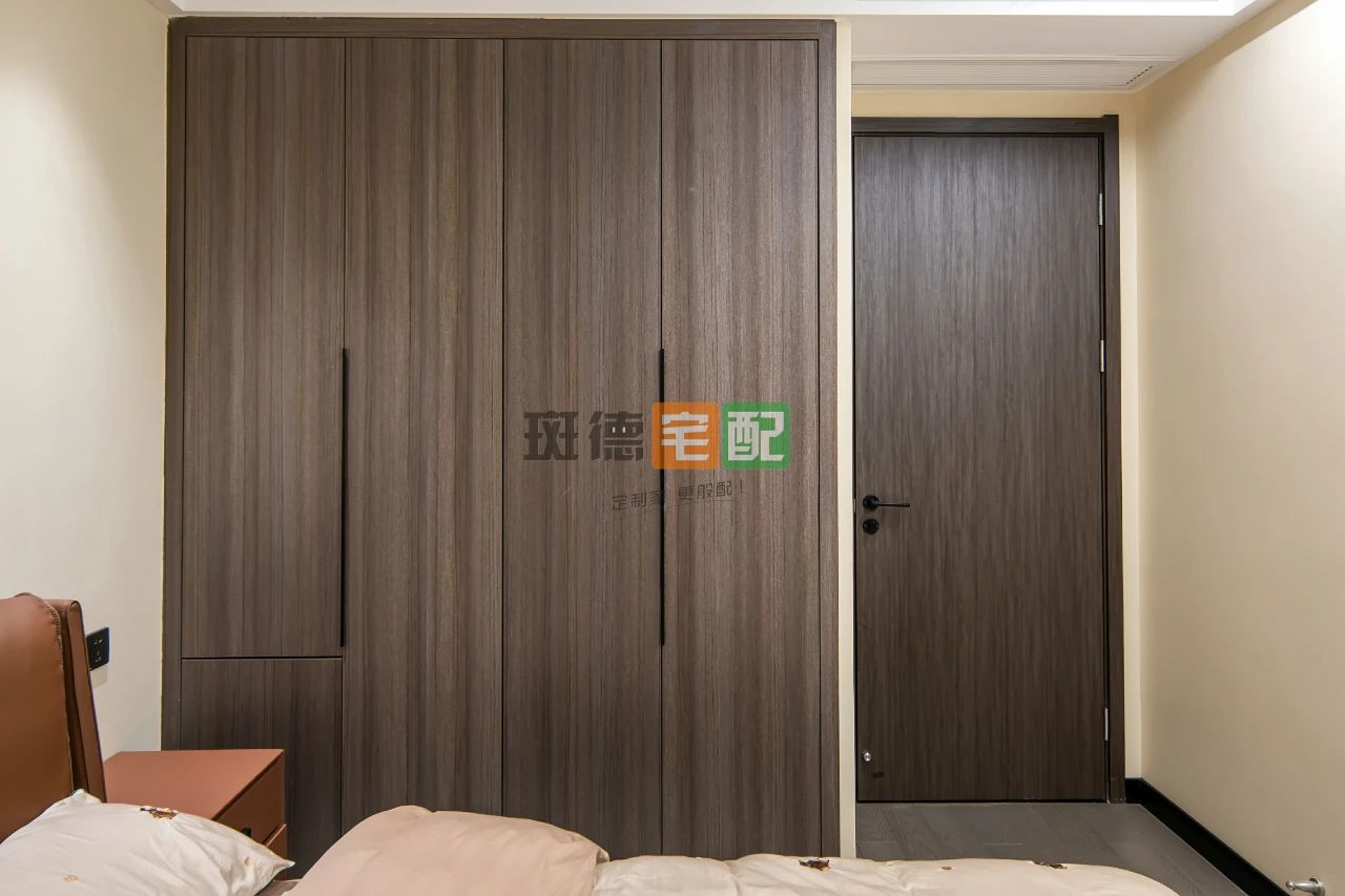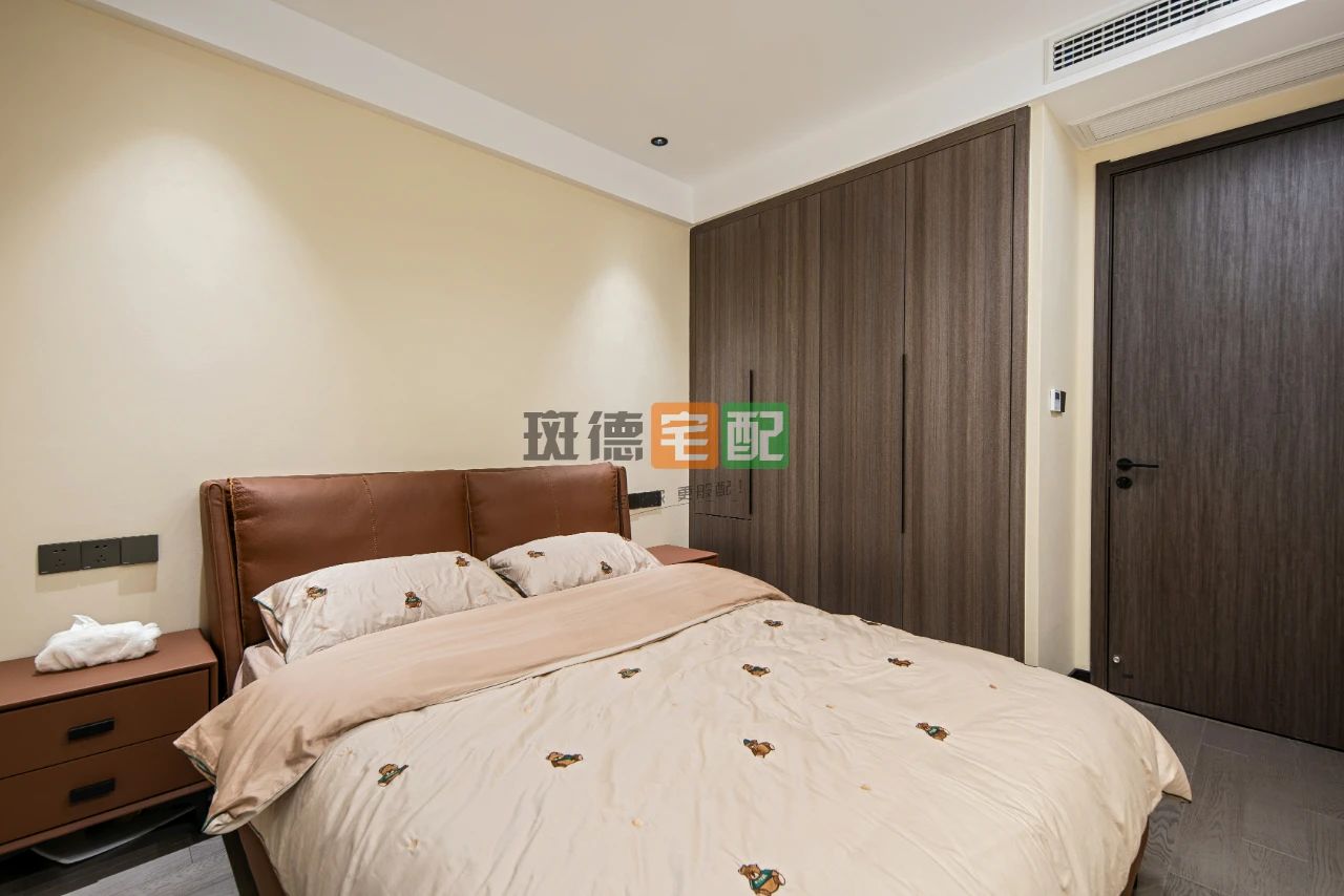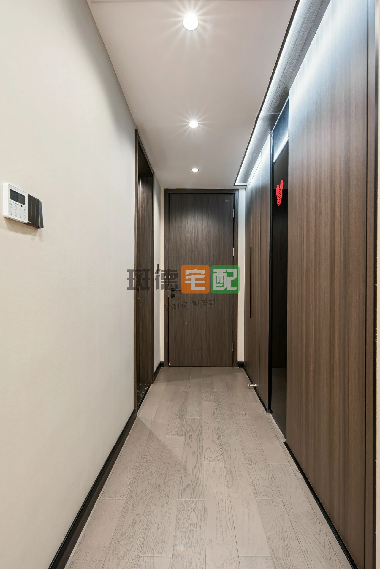 利用主臥過道墻面,實(shí)現(xiàn)衣柜、護(hù)墻板、全身鏡的設(shè)計,加上氛圍燈光,讓空間更有層次,包括立面色彩及裝飾材質(zhì)對比都更加豐富。
