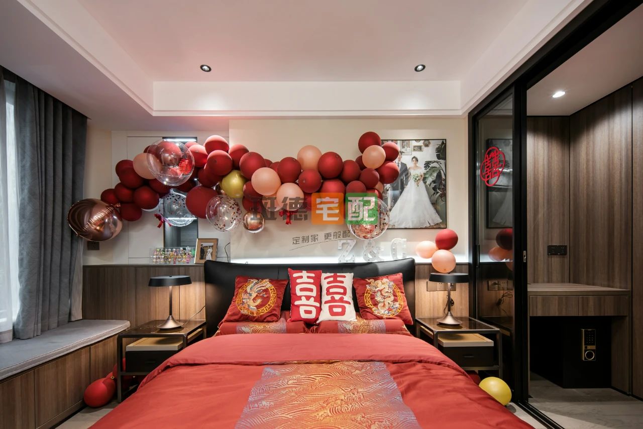 在床頭把八角窗融入背景墻的設(shè)計,既滿足了收納需求,也滿足了功能分區(qū)需求,讓生活更精致。