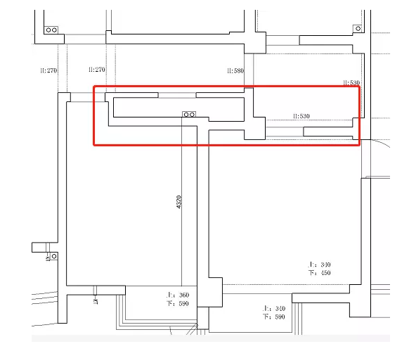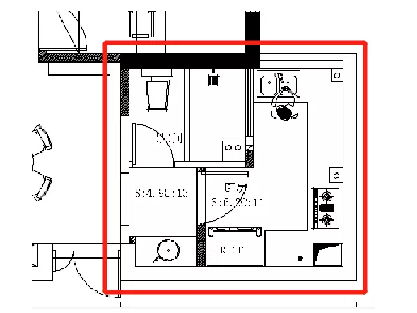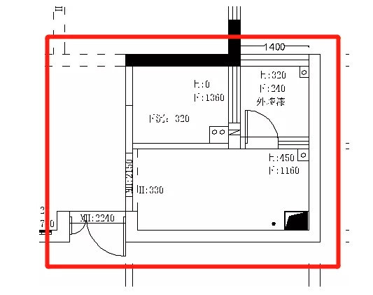 (廚房、衛(wèi)生間、小陽臺原始結(jié)構(gòu)圖)