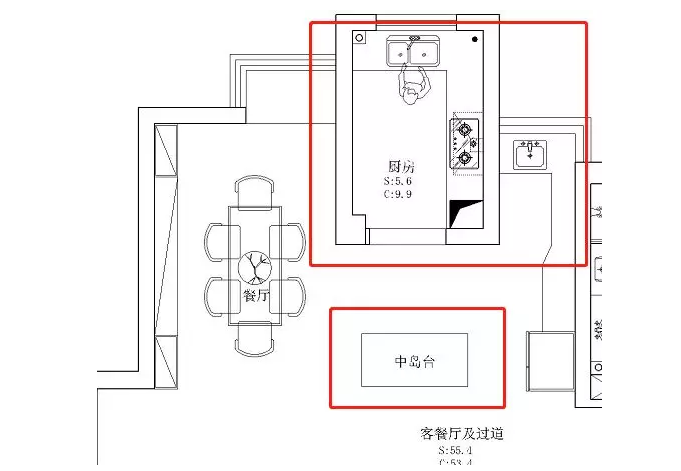 (中西廚房分開,增設(shè)中島臺)