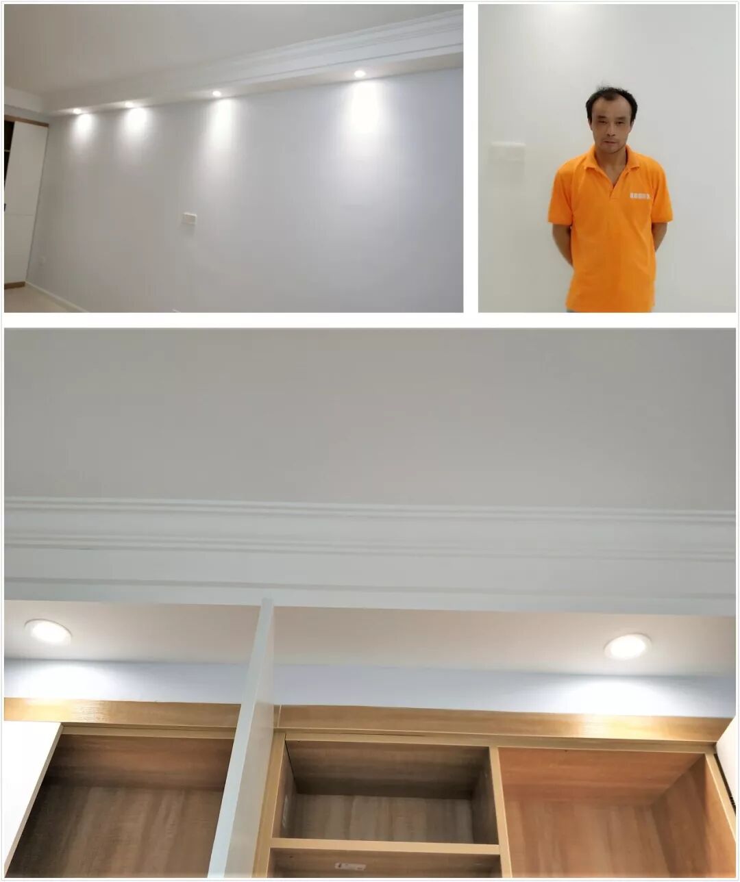 他說不要被業(yè)主說的影響心態(tài)就都沒事,做油灰膩子最重要的就是細心,不能急。墻面要粉平,不能有膩子落在開關(guān)面板、門套、衣柜、櫥柜。不然油灰收尾會很累很麻煩。