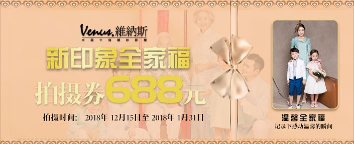 1.報名獲贈由維納斯攝影機構(gòu)提供,價值688元全家福免費拍攝券