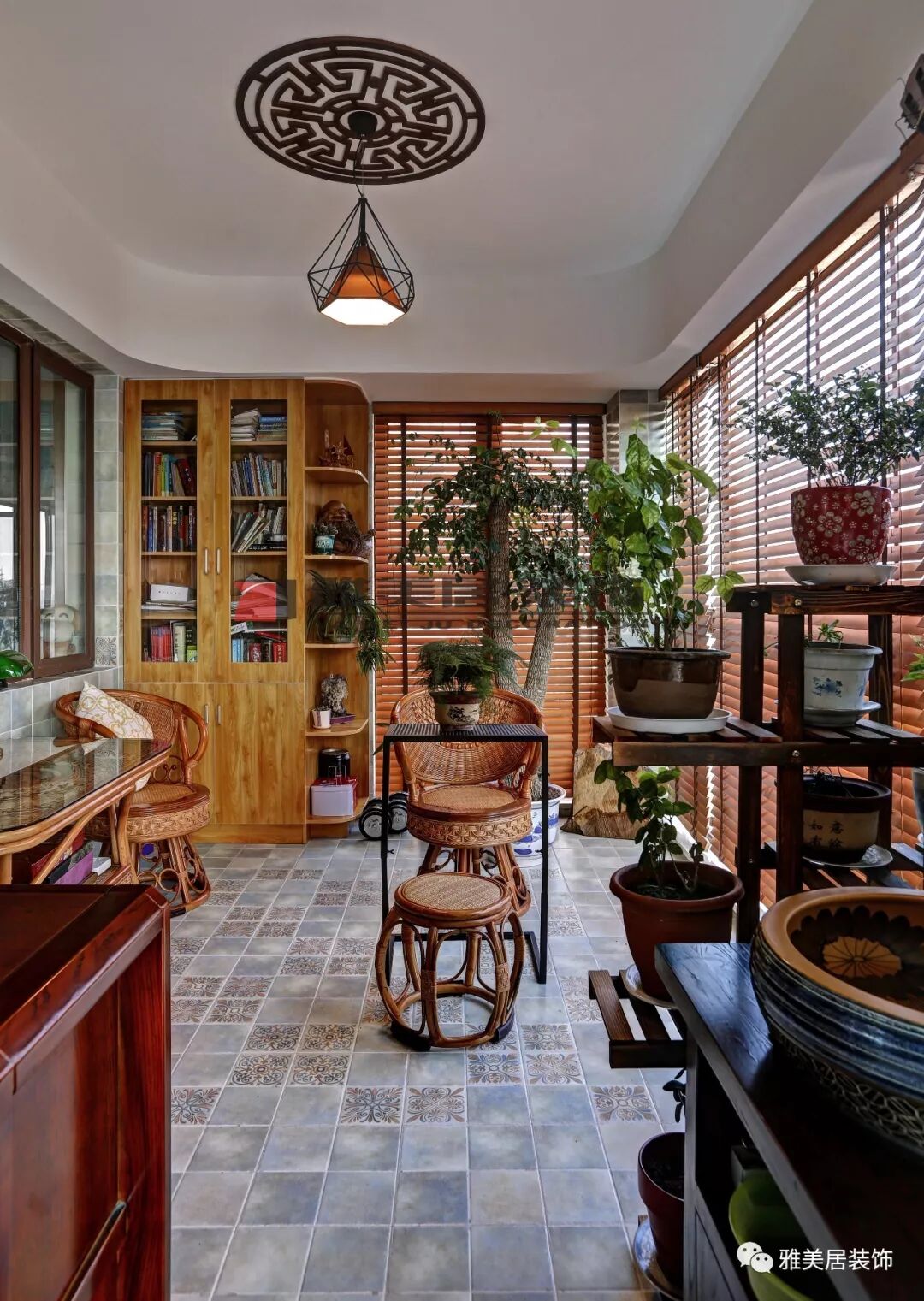 陽(yáng)臺(tái)設(shè)計(jì)成入戶式書房,是喜歡寫作和辦公的絕佳場(chǎng)所,另外休閑茶座在植物的簇?fù)硐?,使在家就可以有小花園的效果,安靜的一隅淋漓盡致地表現(xiàn)出來。