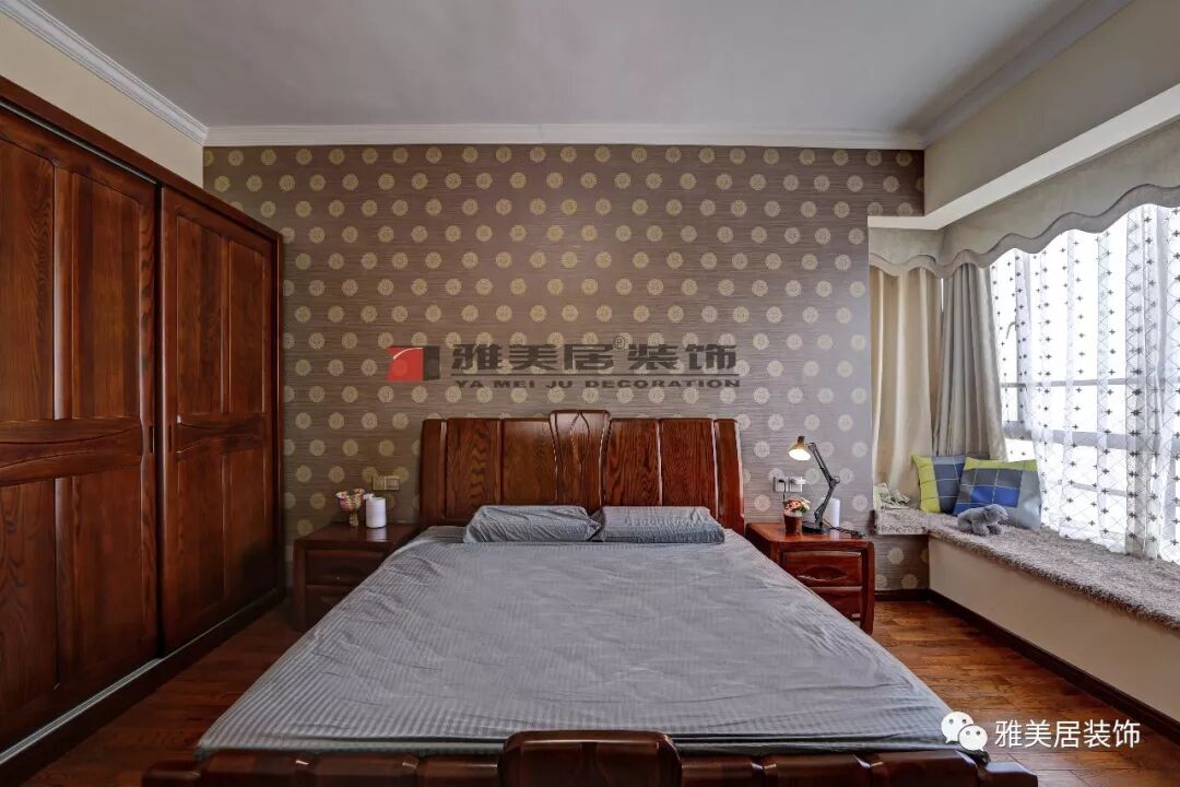 主臥以簡(jiǎn)單的方式裝飾,墻面乳膠漆的顏色搭配中式墻紙盡顯中式風(fēng)格的典雅。