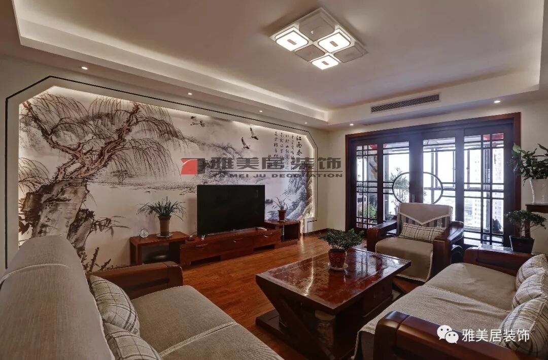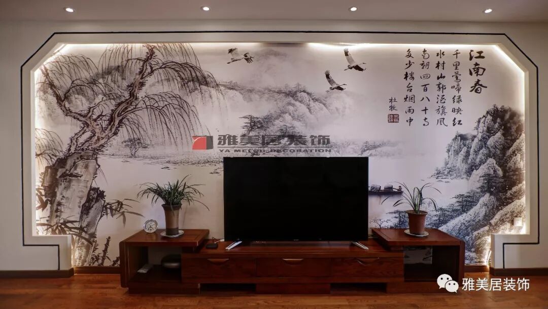 本套案例在設(shè)計(jì)中融合了莊重與優(yōu)雅雙重氣質(zhì)。整體淺色襯托家具顏色的莊重,背景墻的山水造型更是把新中式的優(yōu)雅體現(xiàn)出來。