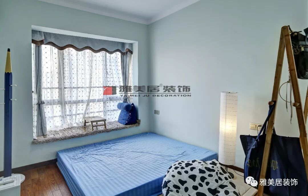 來到次臥,走進(jìn)來看到的便是美好。一抹素雅的藍(lán)色,開一盞燈,看一本書,安靜地享受這一刻,淡寫流年無恙。