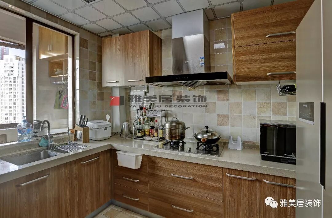 廚房運(yùn)用深淺不一的磚來延伸整個(gè)廚房的空間,同時(shí)櫥柜的色調(diào)與客餐廳相呼應(yīng)。