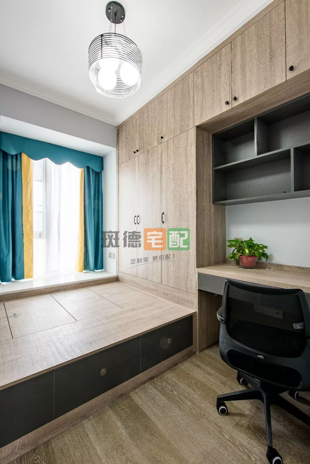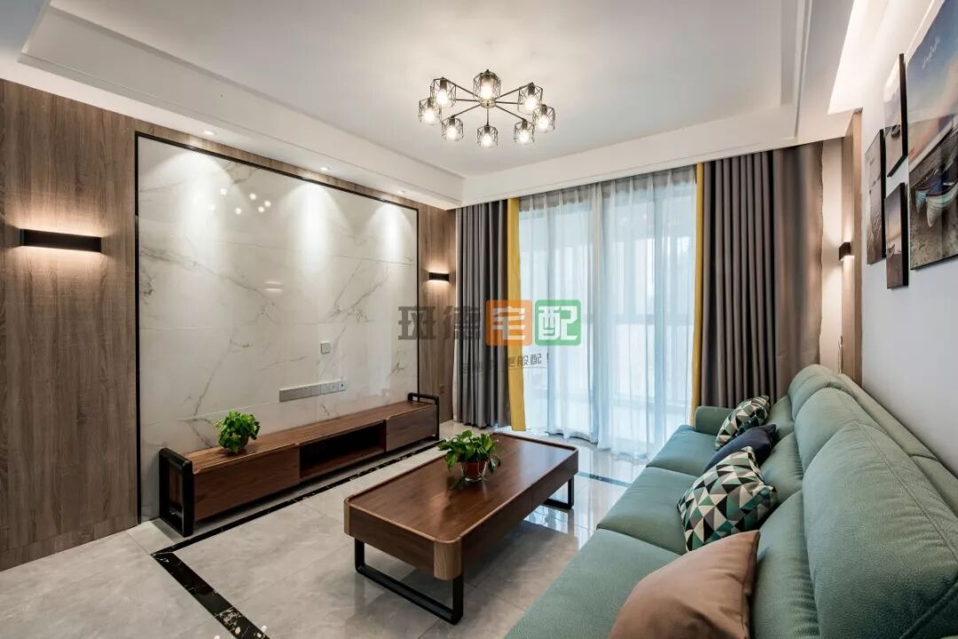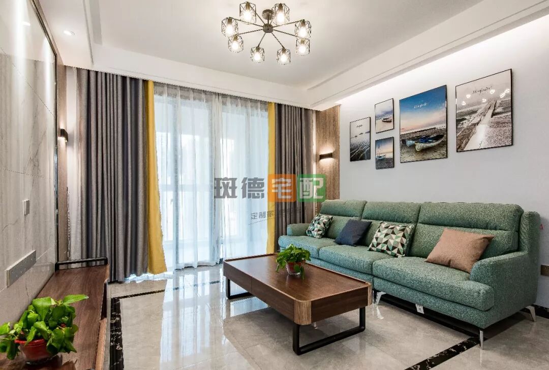 掛上一幅遠景裝飾畫,來達到視覺延伸的效果,天花板用斑德宅配定制板材裝飾,與整體空間相呼應(yīng)。