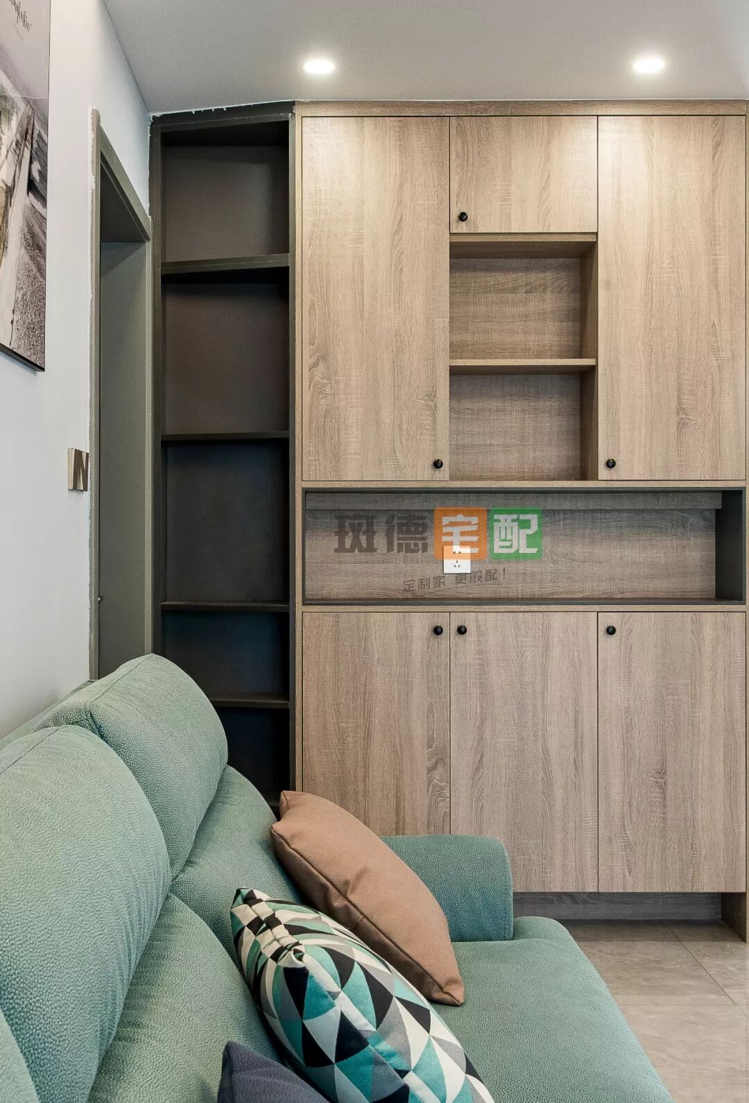 再打造斑德宅配定制鞋柜,上方既可儲物,下方斜板設(shè)計,留空預(yù)留日常鞋子擺放。不會影響進門的效果,儲藏能力也很棒。