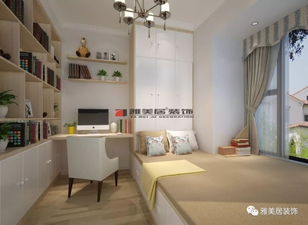 小戶型的家往往不具備書房、客房等獨(dú)立空間,這時(shí)往往會(huì)打造榻榻米整體臥室衣柜,其實(shí)是榻榻米床和整體衣柜的組合,再加上一個(gè)書桌書柜,既增加了空間,又不失美感。