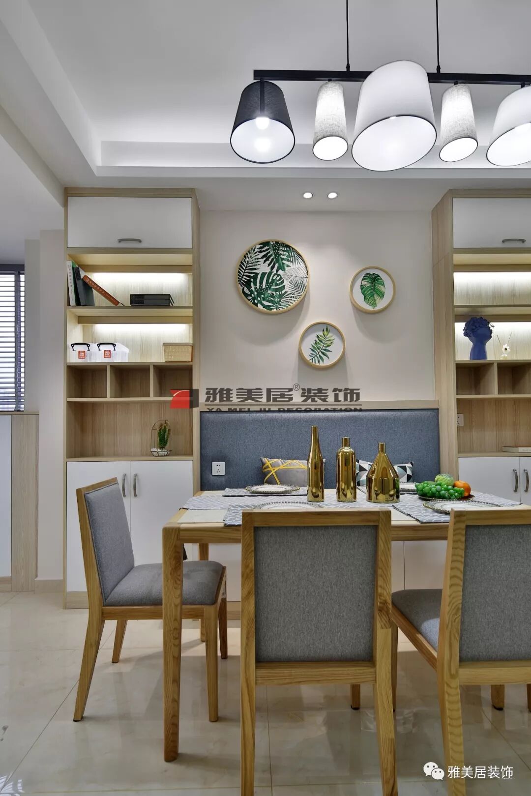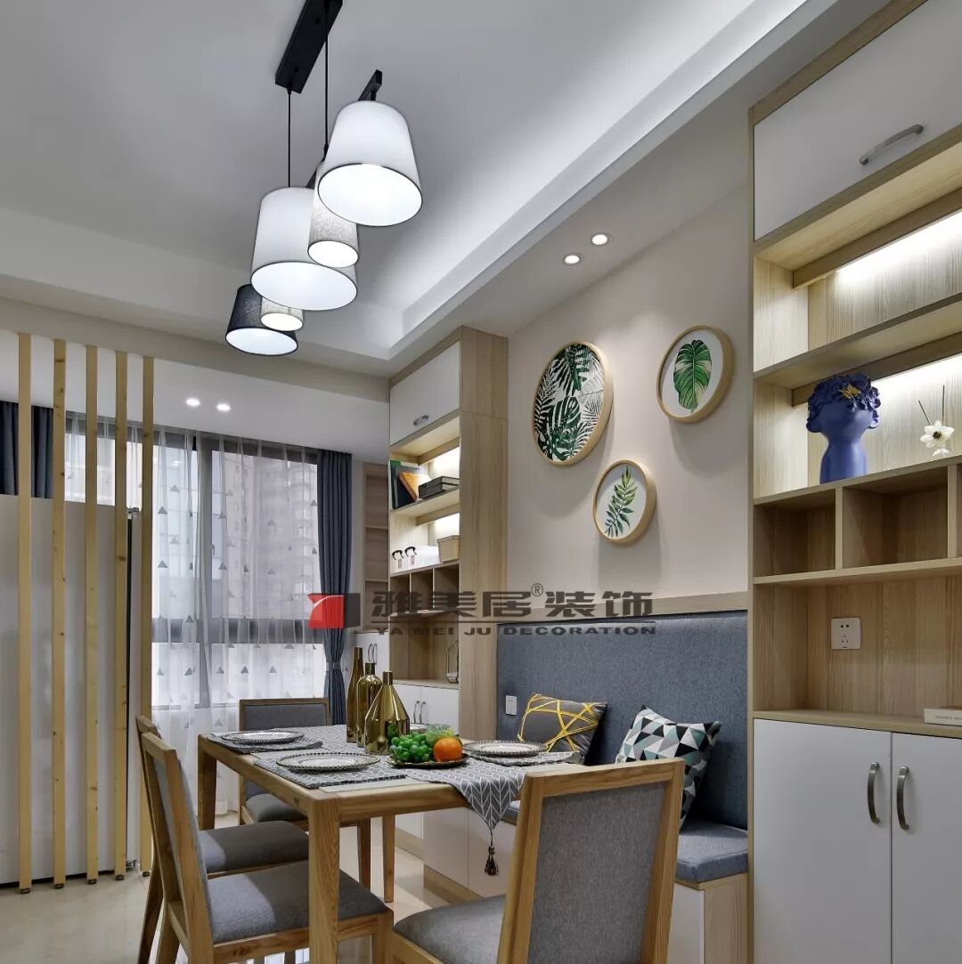 利用墻面空間,斑德宅配定制卡座餐椅設(shè)計(jì),讓用餐過(guò)程更加舒適。收納柜整體為開放設(shè)計(jì)+上下儲(chǔ)物柜分類,讓餐廳的藝術(shù)感得以完整展示。