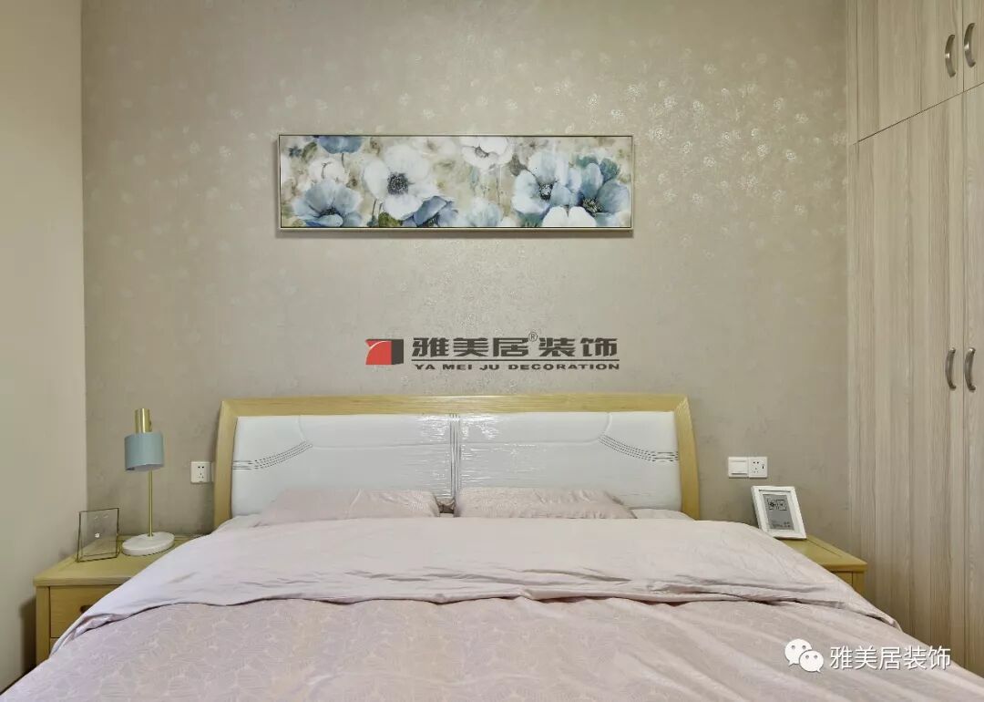 整體色調(diào)偏暖,暖黃色的背景墻紙和靠背,使得整個(gè)空間都被溫暖的氣息所包圍,讓人能夠更容易入睡。
