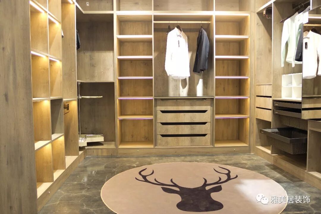 一般若以存放深顏色衣物居多的衣帽間,最好選擇淺一點(diǎn)顏色的板材,找衣物時(shí)視覺上不會(huì)沖突。如果是淺色衣物居多,則不妨考慮大膽的深色板材。