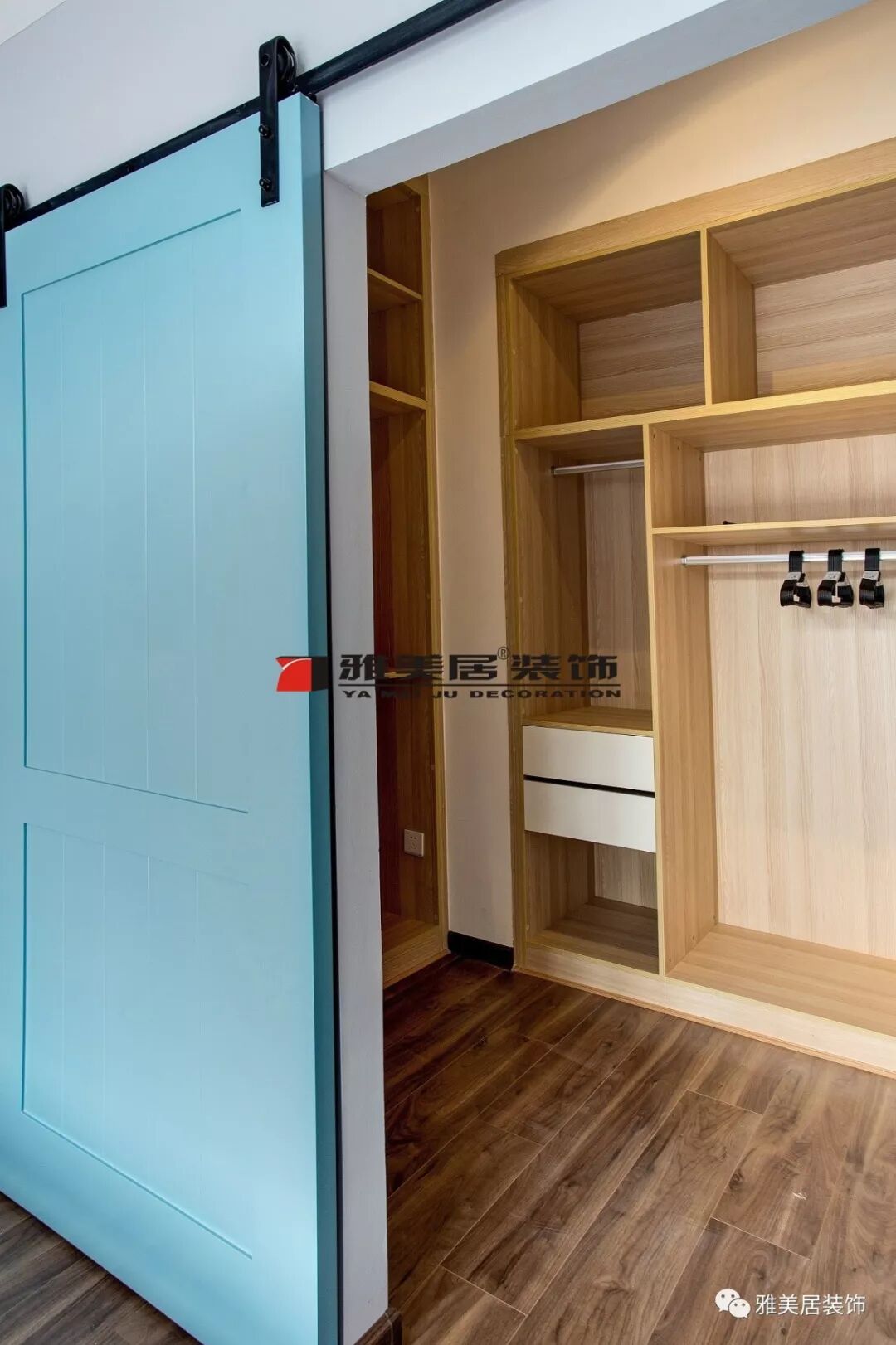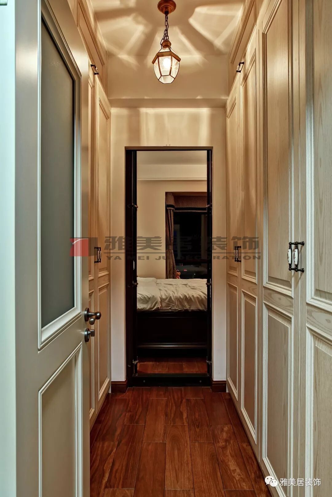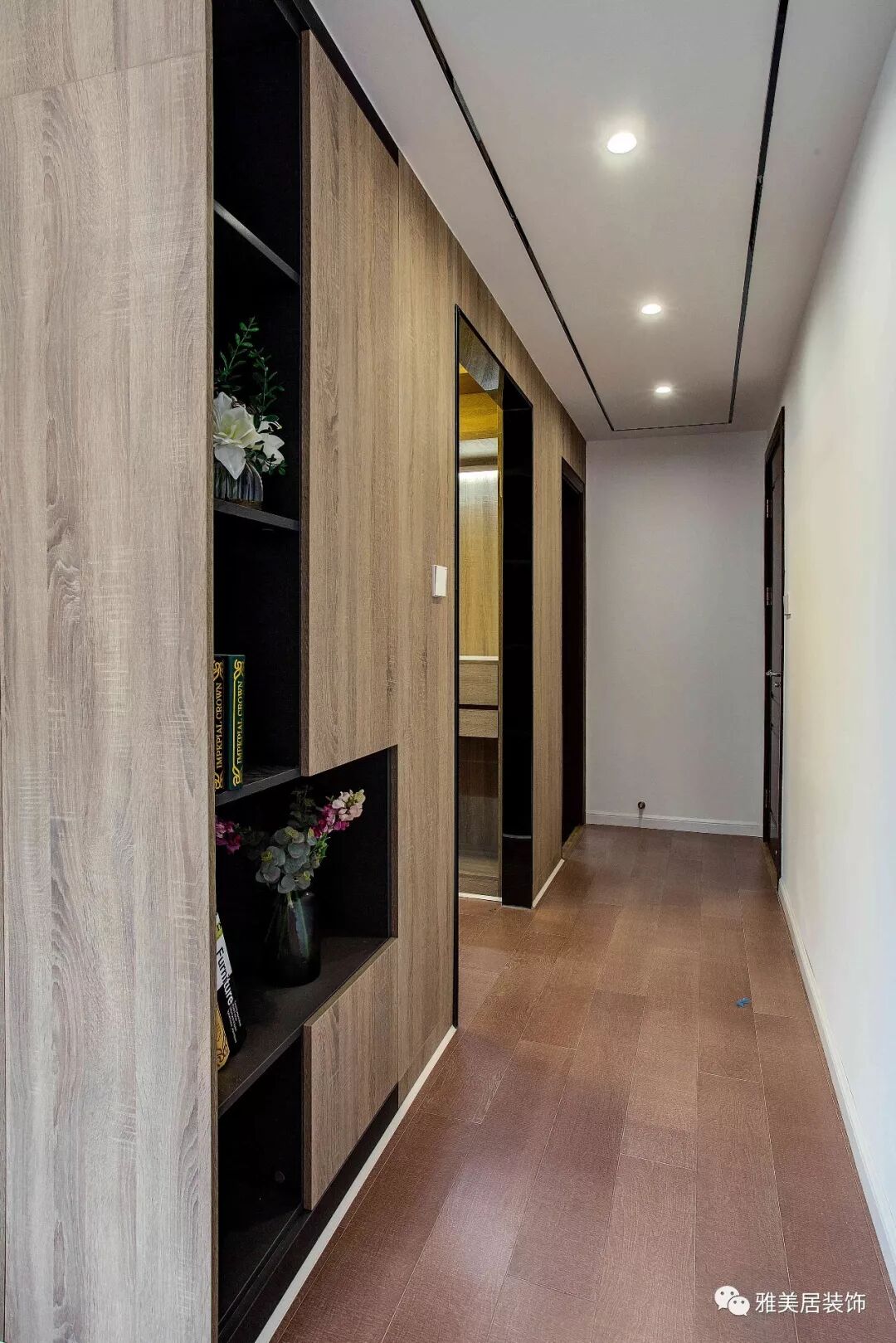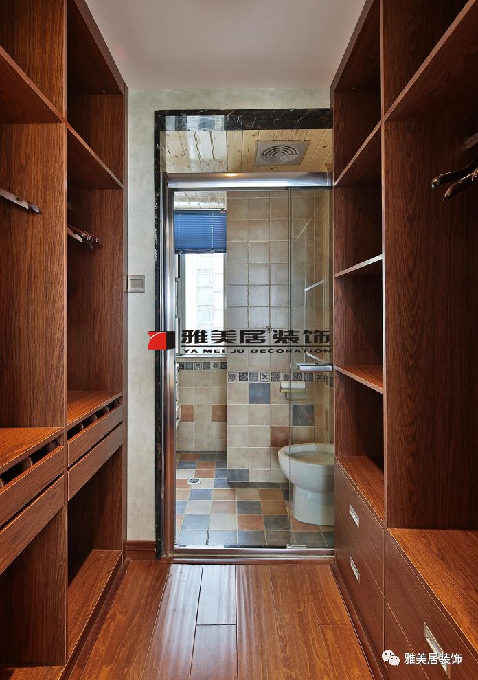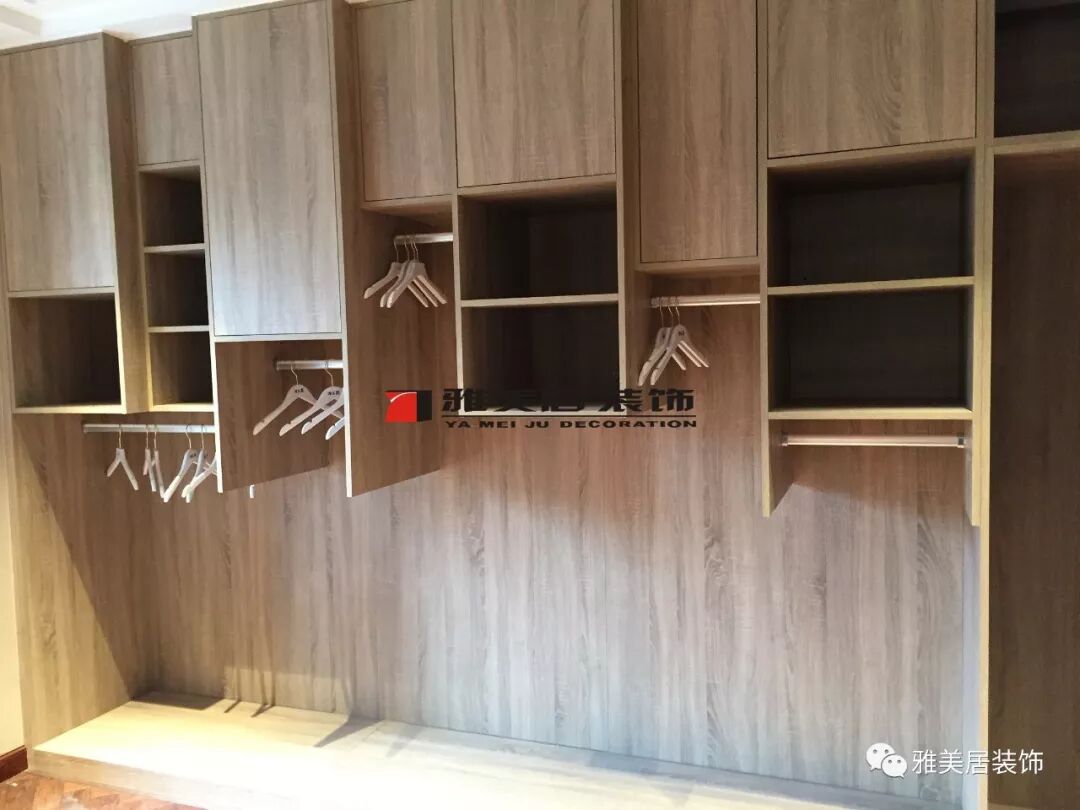 過道原來有個(gè)衛(wèi)生間,因空間太小設(shè)計(jì)成小型衣帽間。柜子柜體設(shè)計(jì)部分可活動(dòng)層板,在使用上更加靈活取用,非常方便,大大地提高了空間利用率。