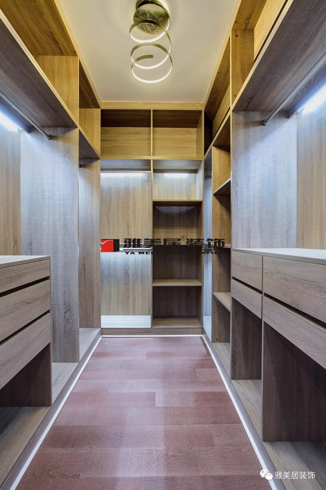 裝修之前之前,就規(guī)劃好衣帽間特定的空間,根據(jù)整體的燈光、色調(diào)和材質(zhì)等搭配進(jìn)行設(shè)計(jì)。在燈光設(shè)計(jì)方面,增設(shè)燈帶,使衣服的顏色最接近正常,方便挑選。