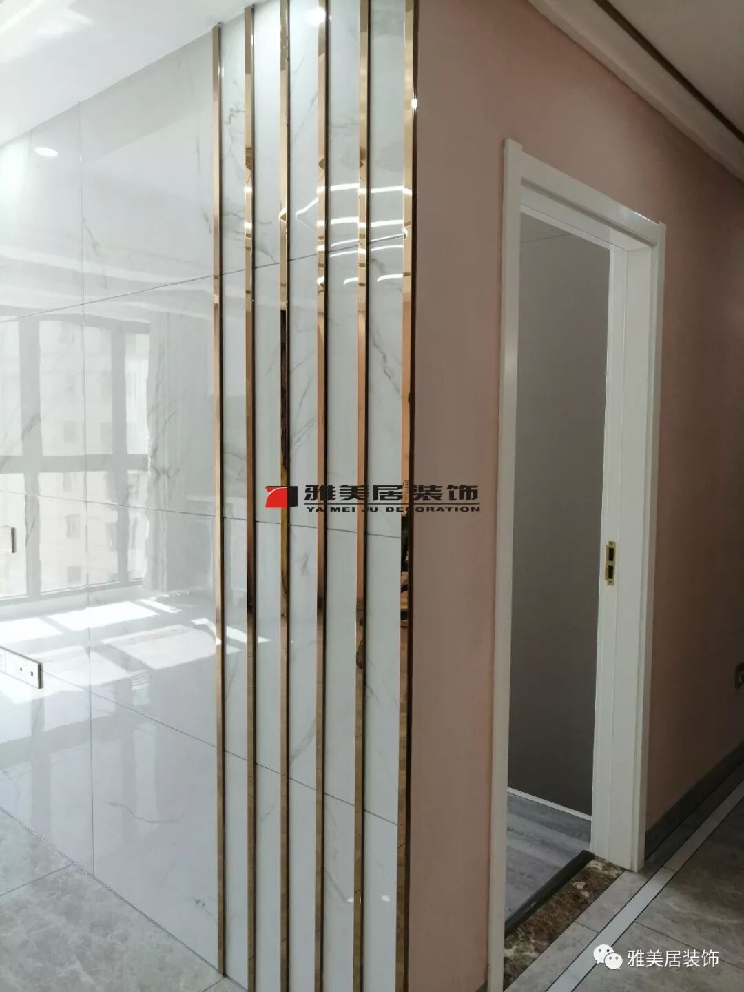 背景墻瓷磚鋪貼鑲金屬