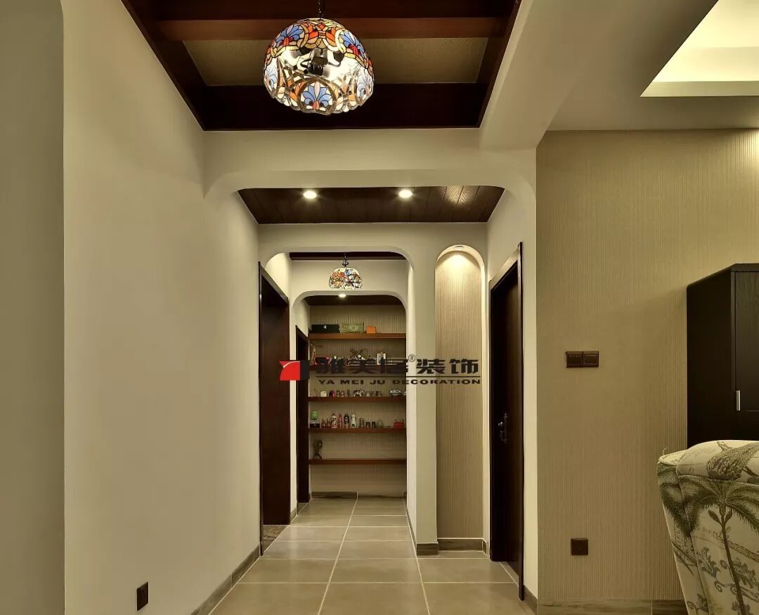 過道上方如果有橫梁的話,可以安裝吊頂,最好選擇簡潔流暢的圖案;或是利用板材來裝飾頂面,同時要與整體設(shè)計先協(xié)調(diào),以免感到壓抑。