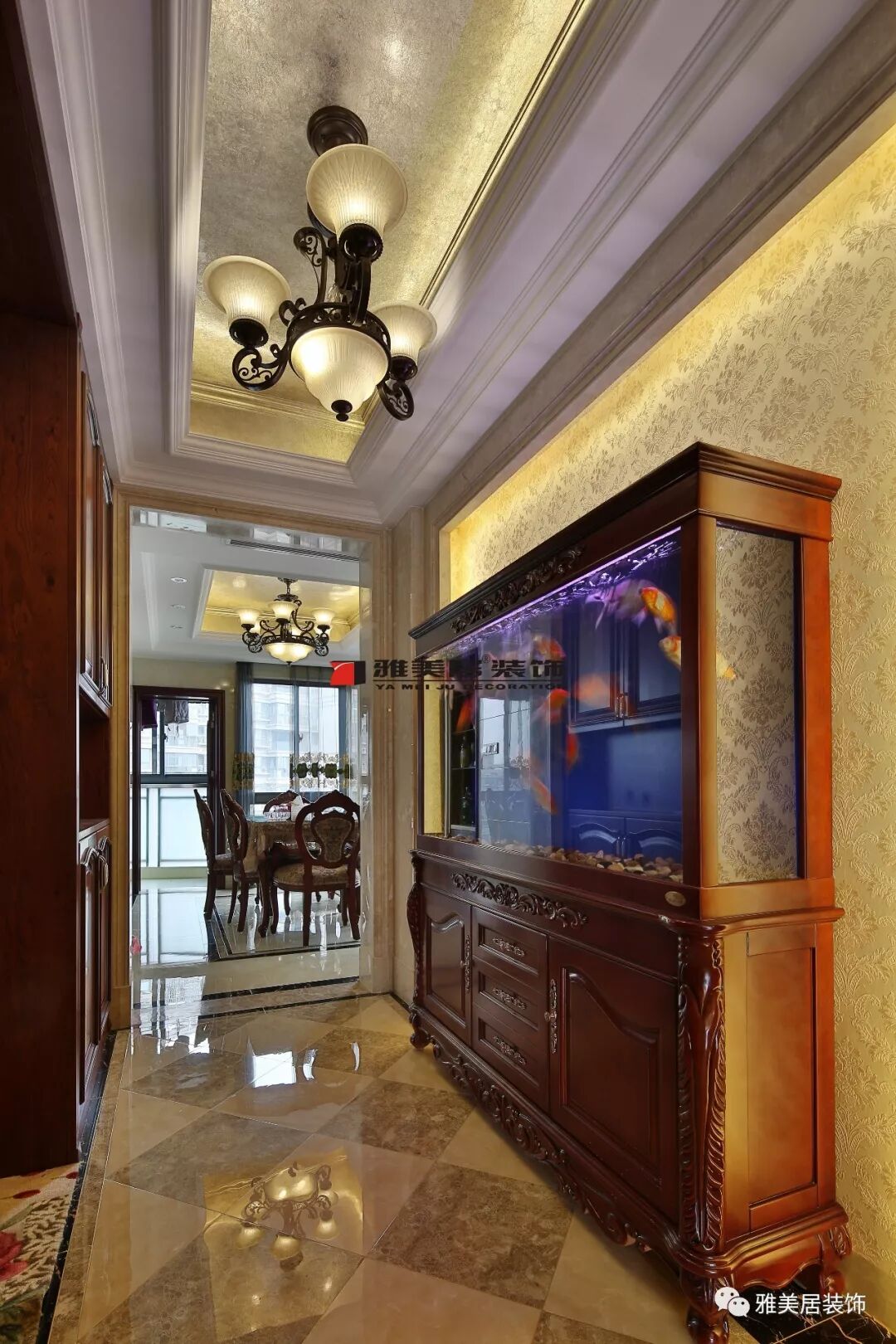 如果過道空間足夠大、有條件的話,放置魚缸或是水族景觀,美化室內(nèi)凈化空氣,一舉兩得。