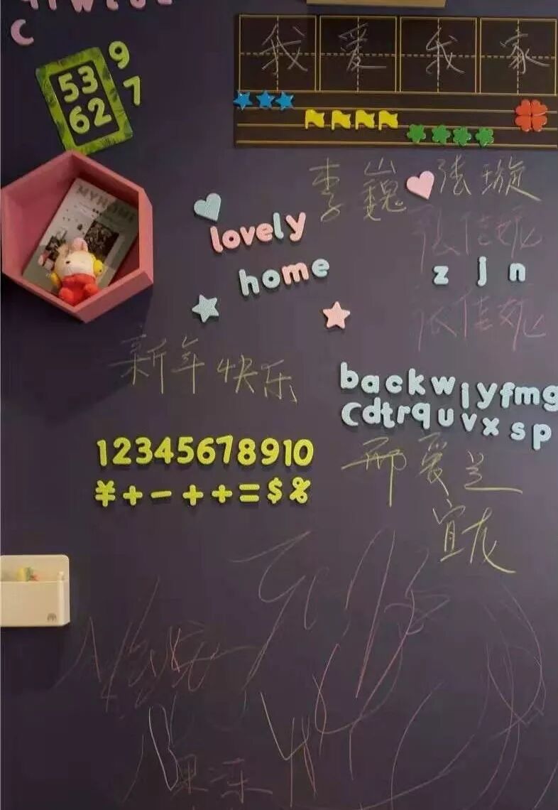 若是家中有寶寶,那么就安放一面黑板墻,涂涂畫畫豐富孩子的興趣,也能避免在家里的墻上亂涂亂畫。