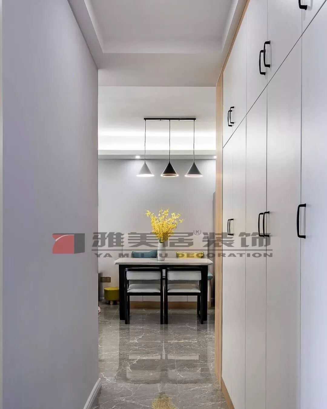 將過道設(shè)計成收納區(qū),承擔(dān)其他空間的部分儲物需求,為其他空間騰出更多的設(shè)計可能。