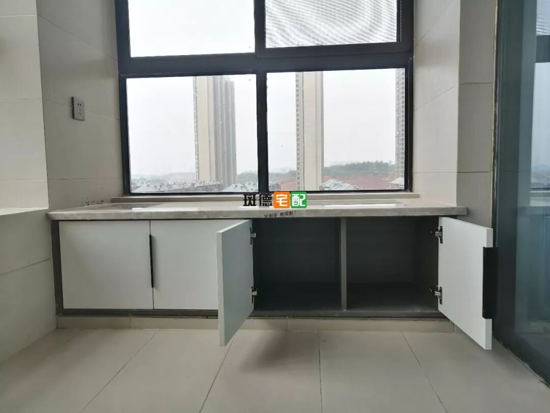 因為另一邊有窗戶,打造地柜,設計師考慮到陽臺會經(jīng)常有水加上太陽的照射,柜子容易受損。