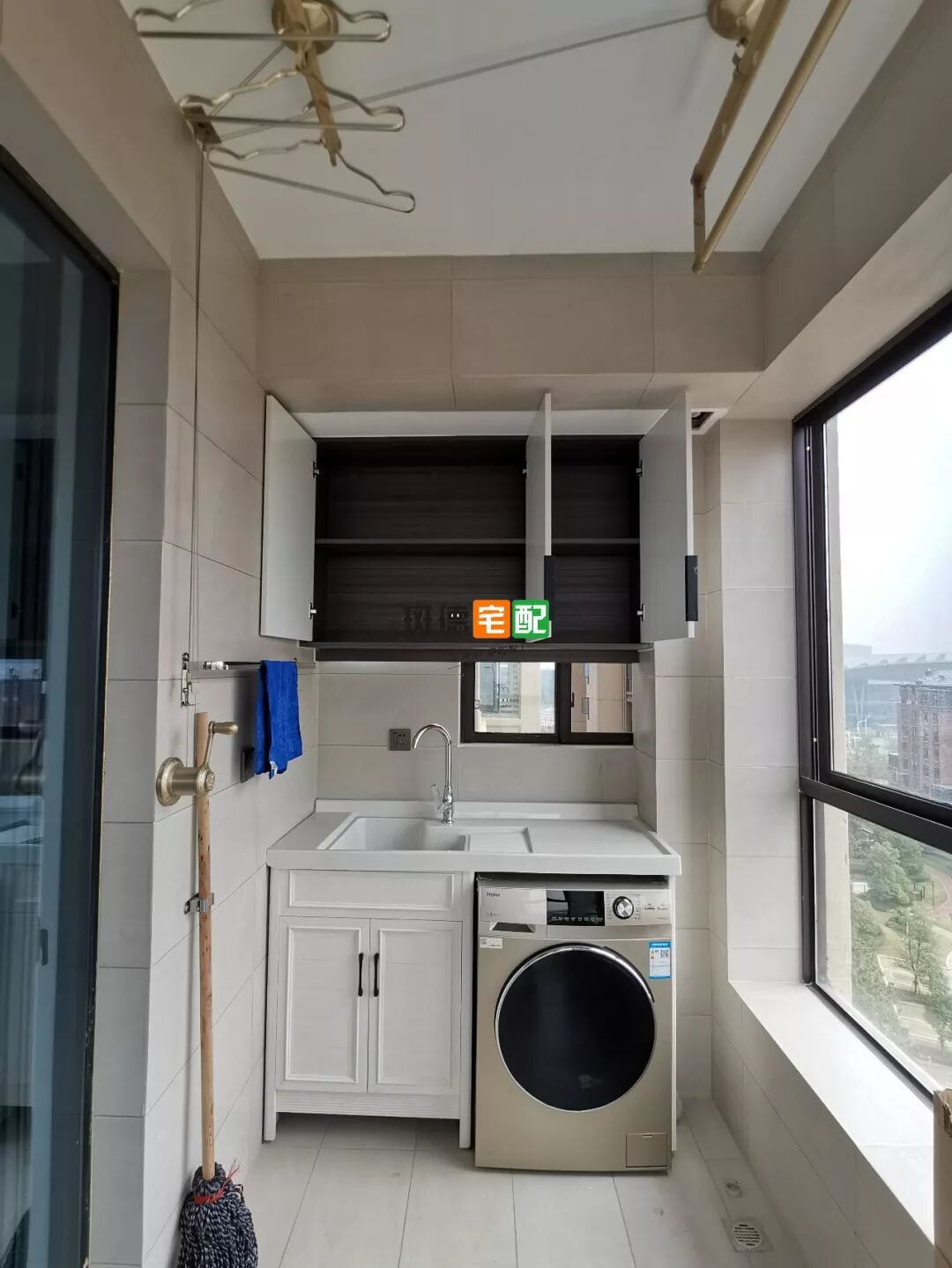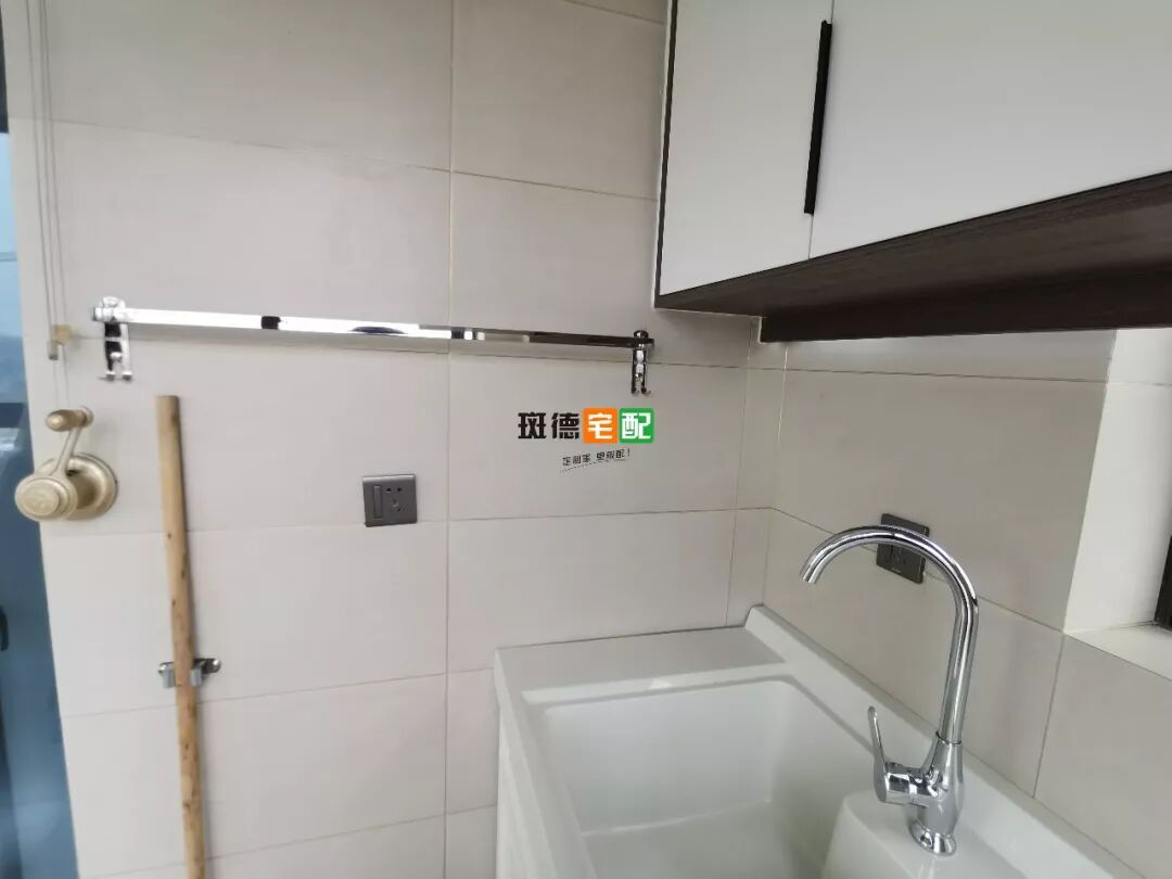 為了讓業(yè)主干家務省事,設計師把洗衣、收納、晾曬這三個功能通過一個柜子實現(xiàn)。內(nèi)嵌洗衣機+洗衣機柜+吊柜這樣的組合非常不錯。