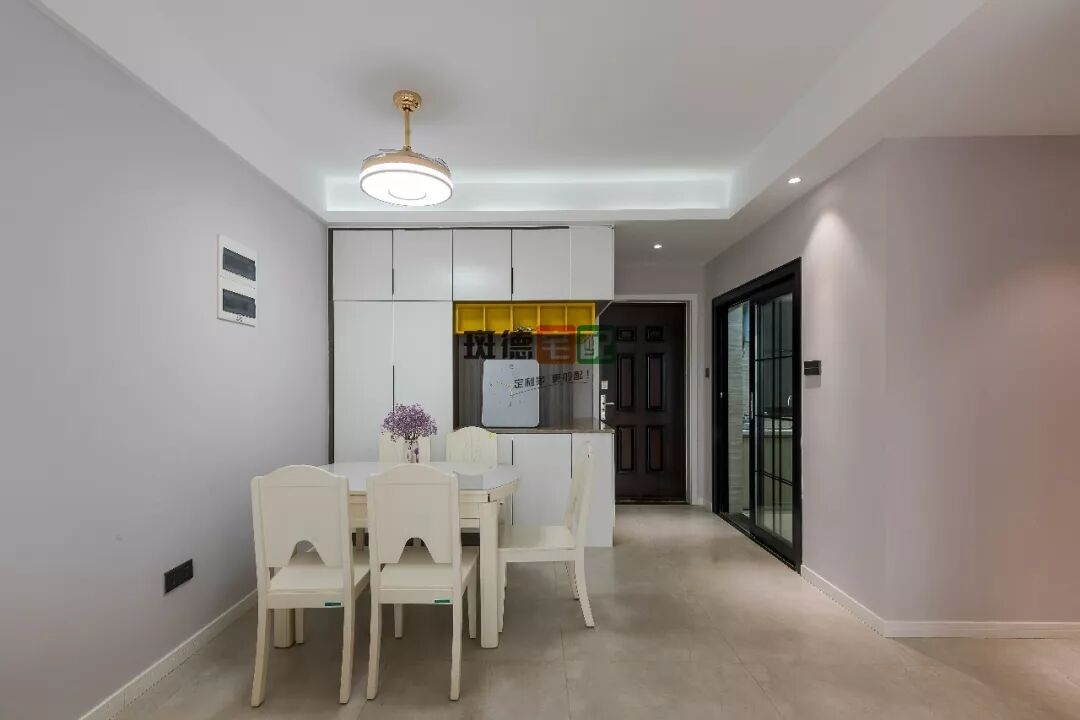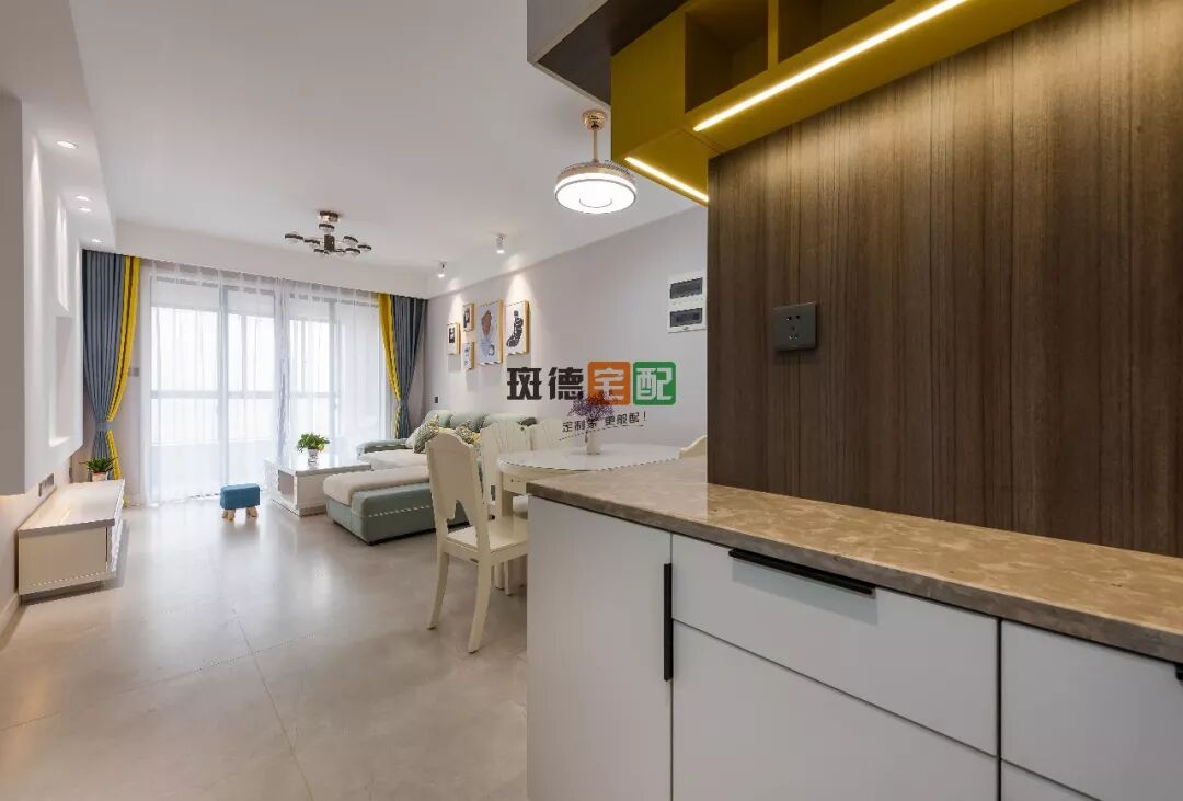 餐廳位于進門右手邊,緊鄰廚房。餐邊柜因為與玄關(guān)連接,打造整面柜子則過于壓抑,左邊采用40公分徑深到頂柜。