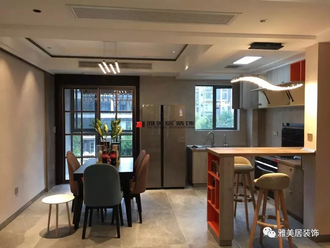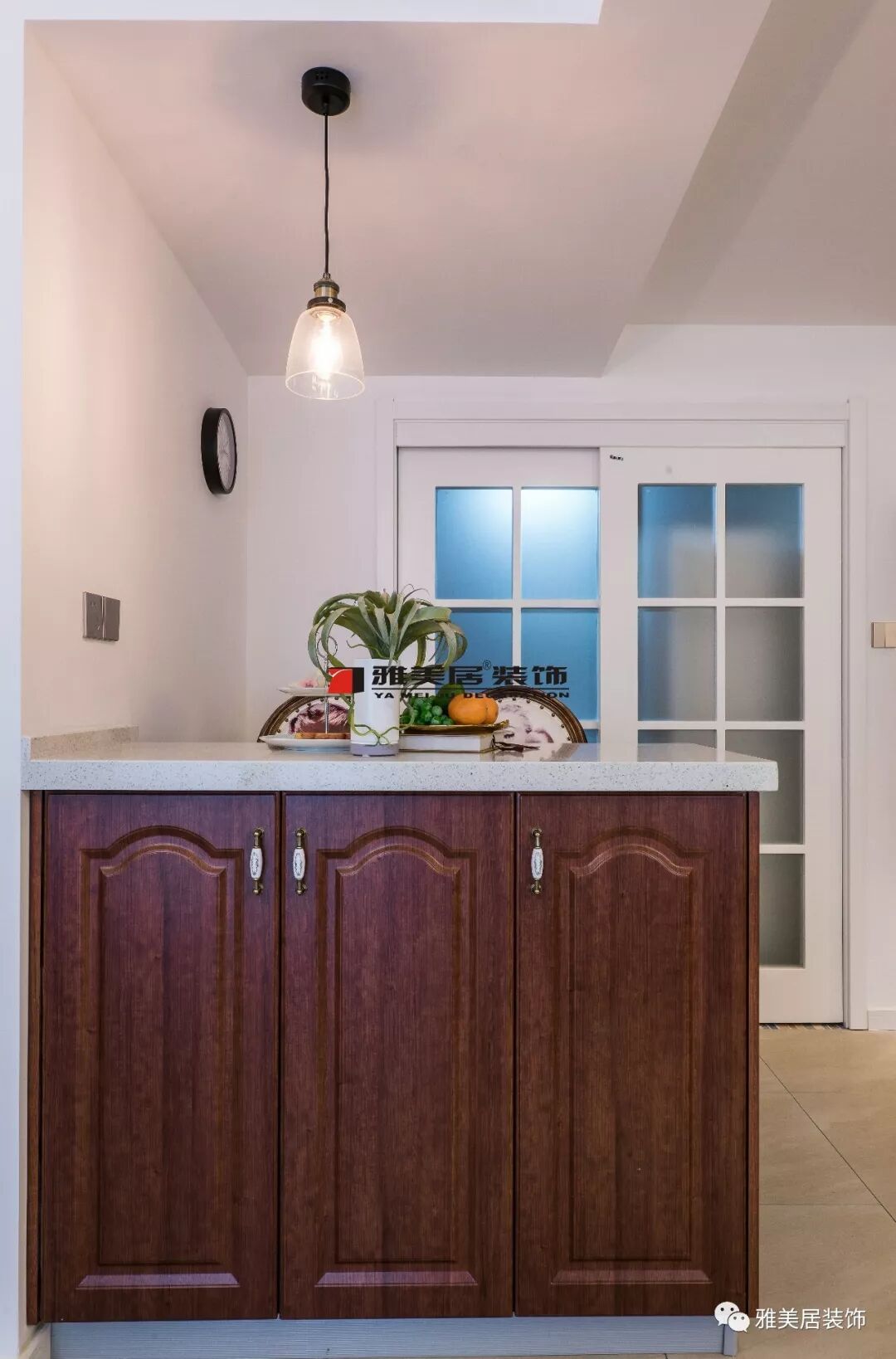如果你家是開放式的廚房,可以在廚房與餐廳之間裝一個(gè)吧臺(tái),吧臺(tái)跟廚房相連設(shè)計(jì),既可以當(dāng)廚房中島,又可以當(dāng)吧臺(tái),側(cè)面打造裝飾儲(chǔ)物格。