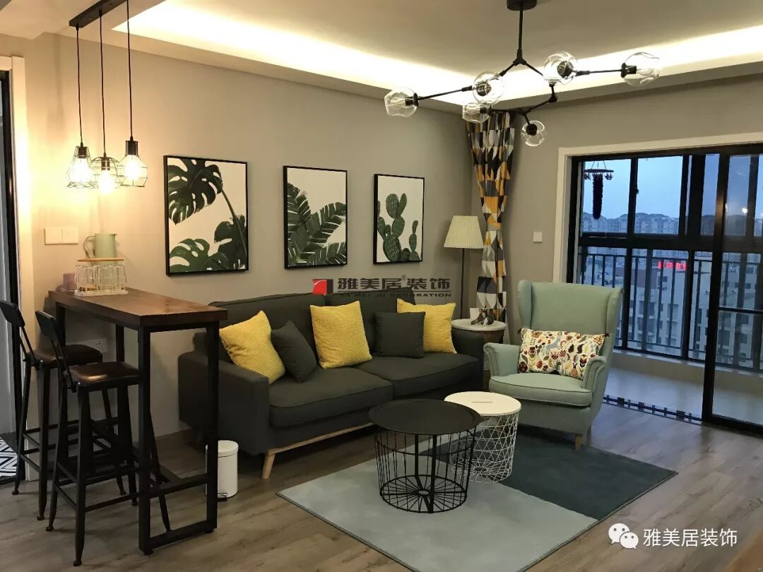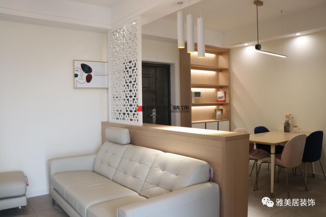 客廳沙發(fā)背后空間也可以利用來裝吧臺(tái),三兩好友相聚,在吧臺(tái)放置酒水飲料,同時(shí)也能作為餐邊柜使用。