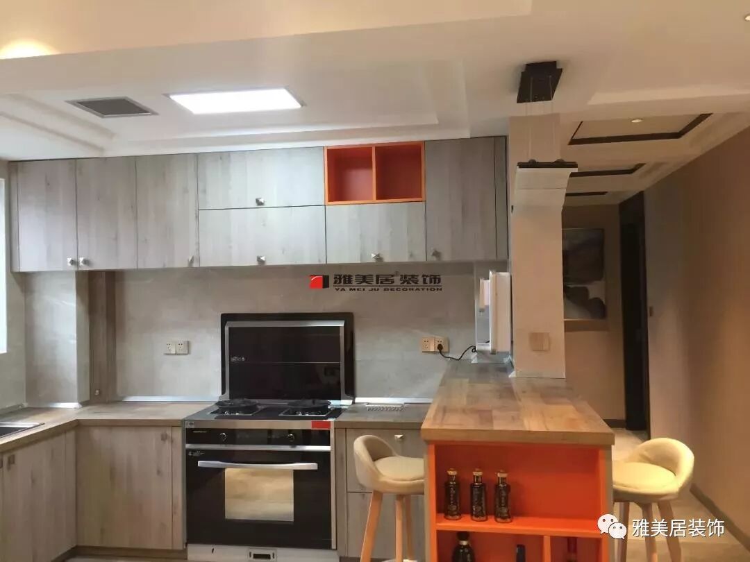 吧臺(tái)的用途越來越豐富,可以當(dāng)餐桌也可以是工作臺(tái),在臺(tái)面下方定制儲(chǔ)物柜,為小廚房分解收納壓力。生活講究?jī)x式感,有個(gè)吧臺(tái)也是享受的。
