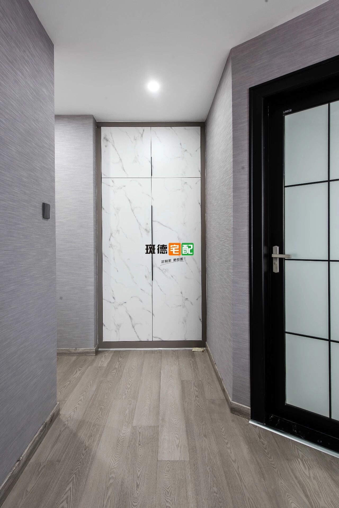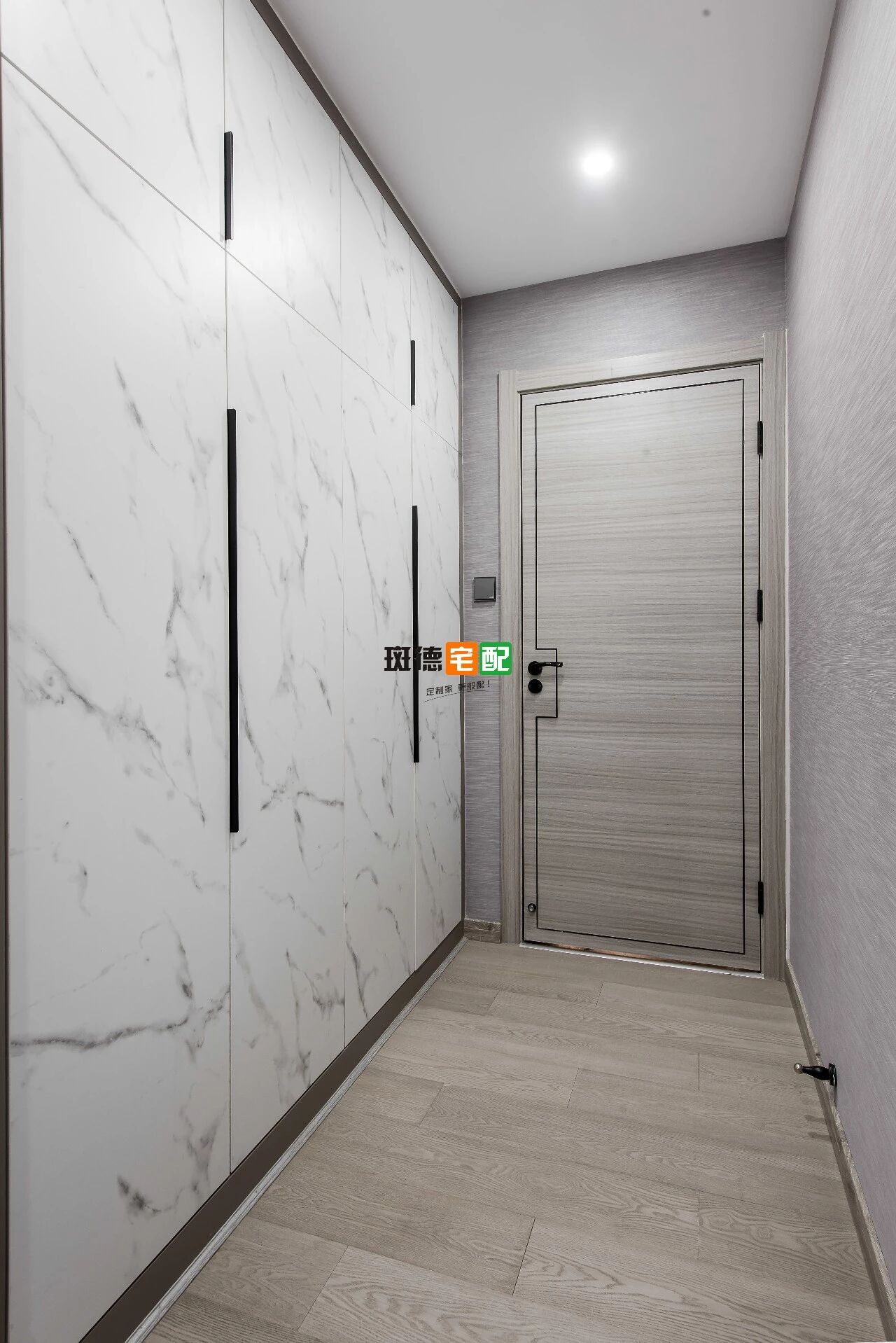 鋁合金拉手、黑色門邊框搭配爵士白板材起到極好的裝飾作用,一舉多得很實用。