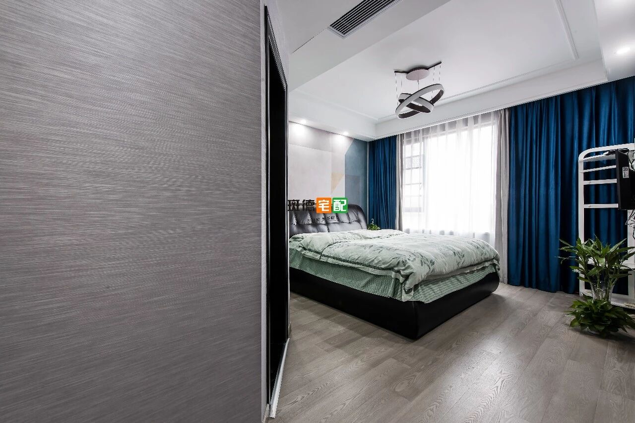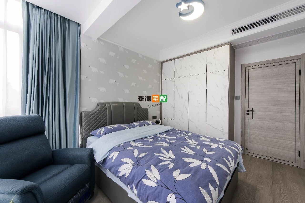 房間安裝窗簾盒,避免漏光,美觀大方。全房鋪貼墻布也蘊含著設(shè)計的用心,在墻布線條收口上,與中央空調(diào)口齊平,整體銜接統(tǒng)一。