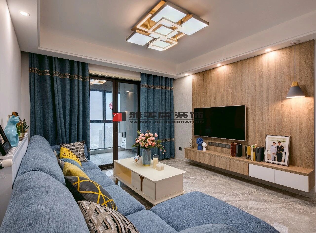這種設(shè)計一般以電視為中心,用儲物柜+地柜襯托墻面,讓畫面顯得更為協(xié)調(diào)美觀。