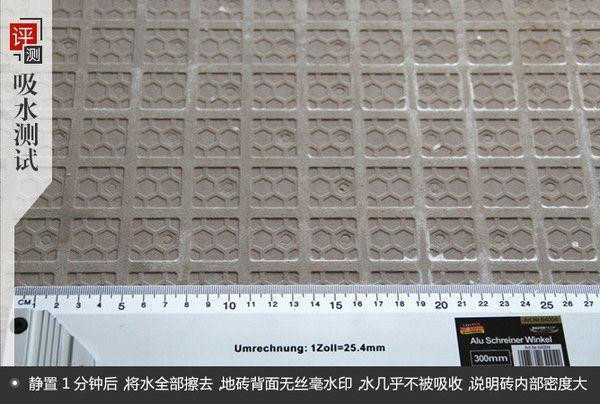 在瓷磚背面撒一點(diǎn)水,一般來說,吸水越慢,說明瓷磚的密度越大,質(zhì)量越好。