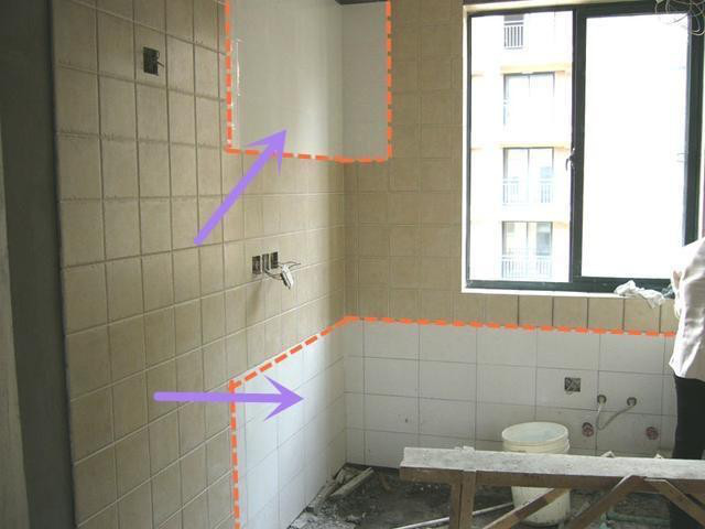 3、櫥柜的背面擋住的部分可以用雜磚貼這樣省錢。