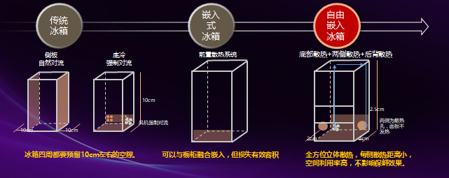 普通冰箱一邊需預(yù)留5公分散熱,卡薩帝冰箱左右則需各預(yù)留2公分即可,兩側(cè)為散熱孔,全方位立體散熱,不會(huì)損壞櫥柜,空間利用率高。
