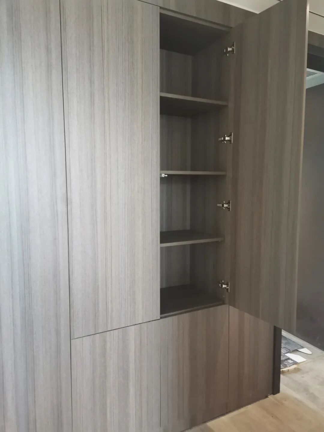 ②柜門根據(jù)設(shè)計風(fēng)格,可選擇相應(yīng)的板材設(shè)計造型