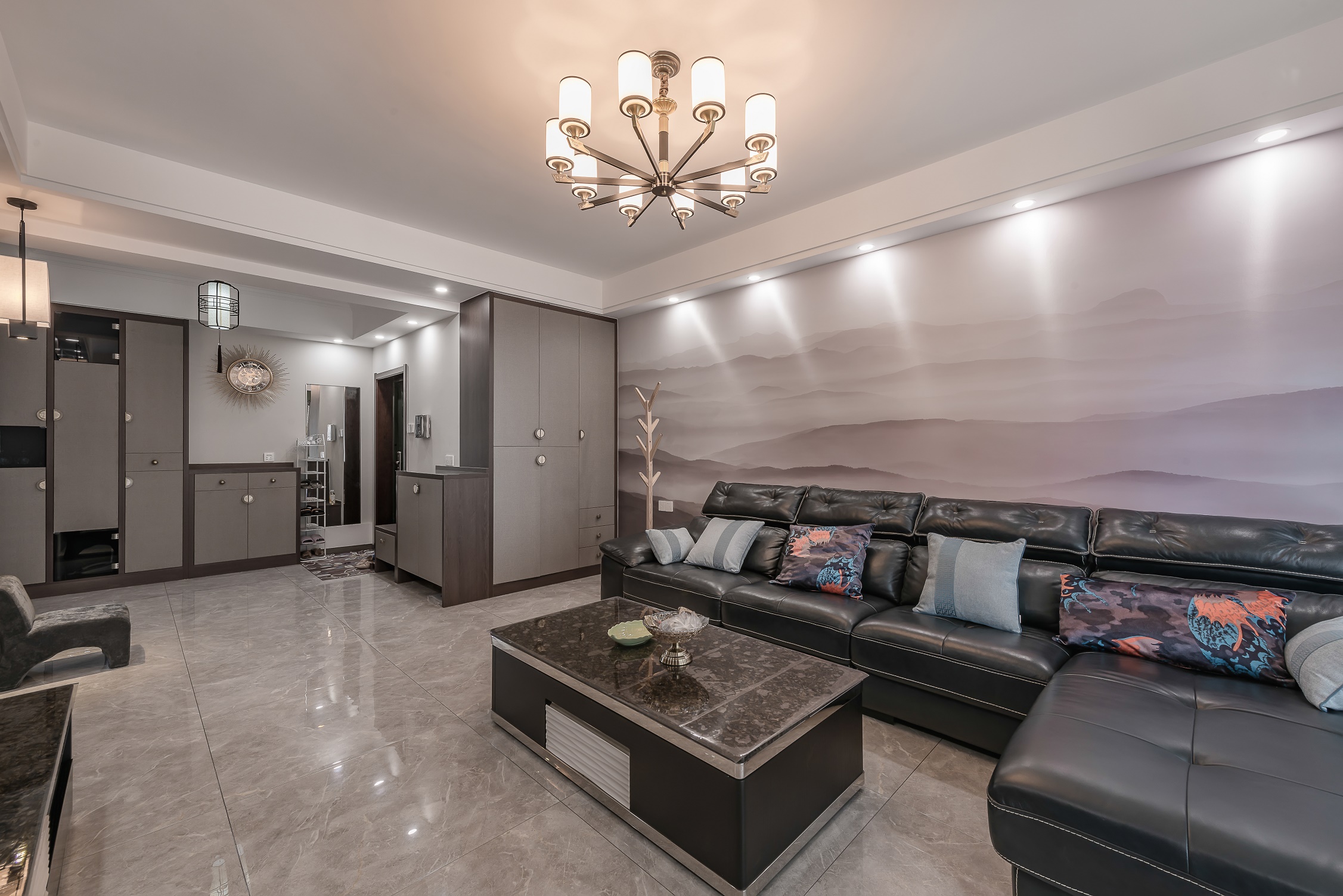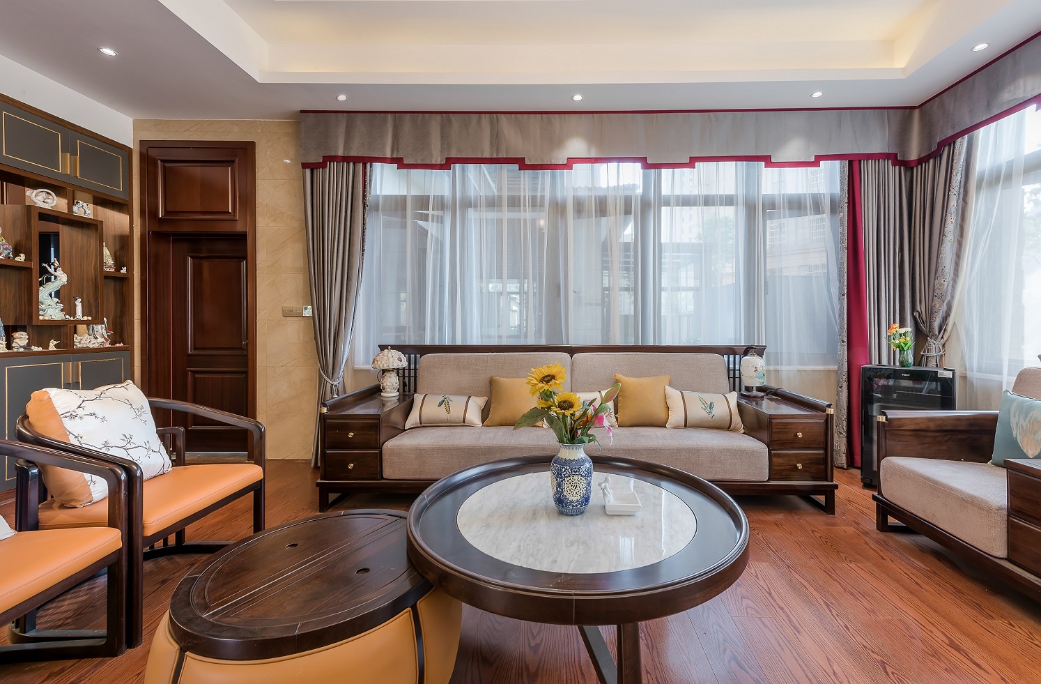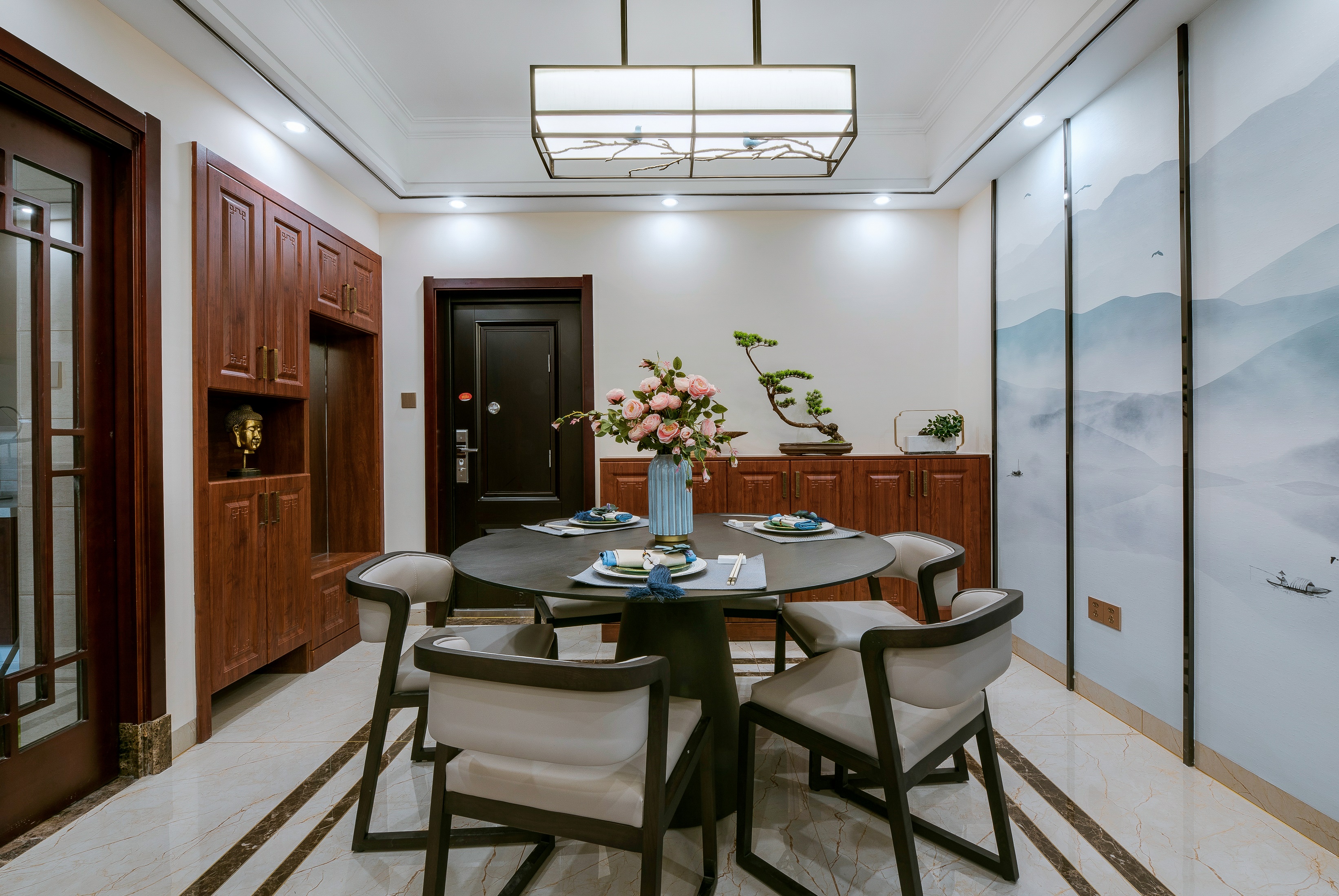 猜你沒見過!125㎡新中式:背景墻集3種造型,定制柜把拆墻擴容玩到極致