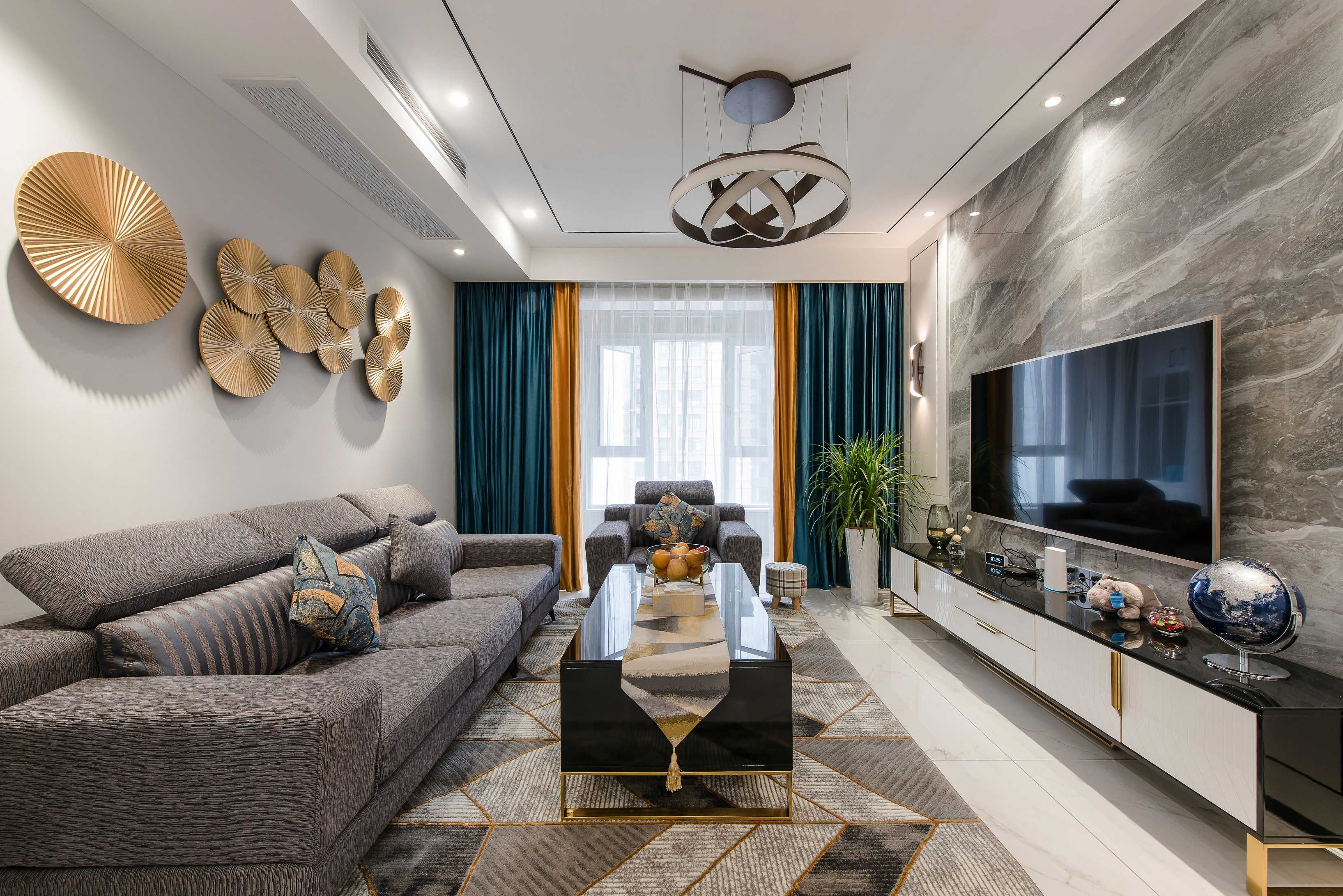 無主燈+拼色定制柜,還有步入式衣帽間,他家120㎡三室好能裝!