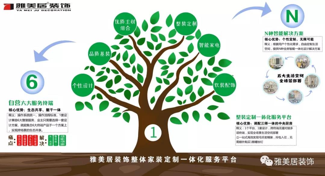 2019年,雅美居裝飾集團再次進行新的品牌戰(zhàn)略升級,推出“平價整裝1+6+N”服務(wù)體系,完成品牌迭代與品牌認知的升級融合。